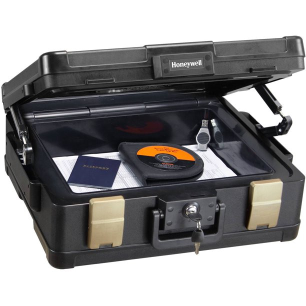 Honeywell 1104. 0.39 cu. ft. Waterproof 1-Hour Fire Chest With Key Lock. Carry Handle