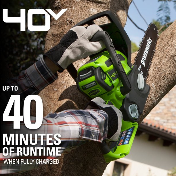 Greenworks 40V 12-inch Cordless Chainsaw With 2.0 Ah Battery And Charger. 2000219