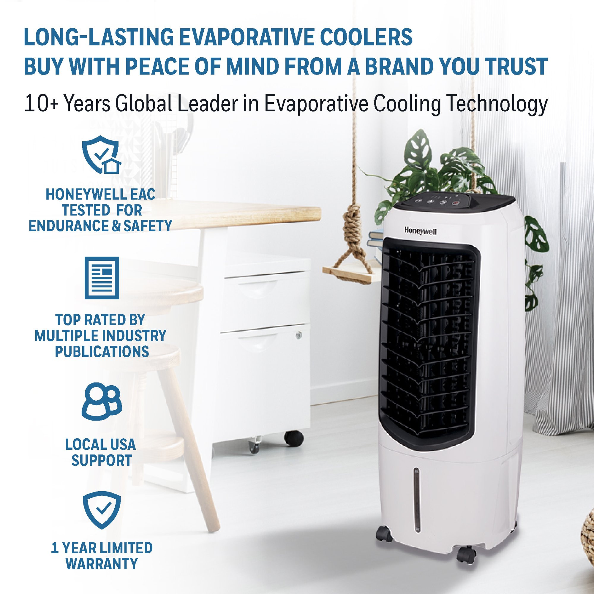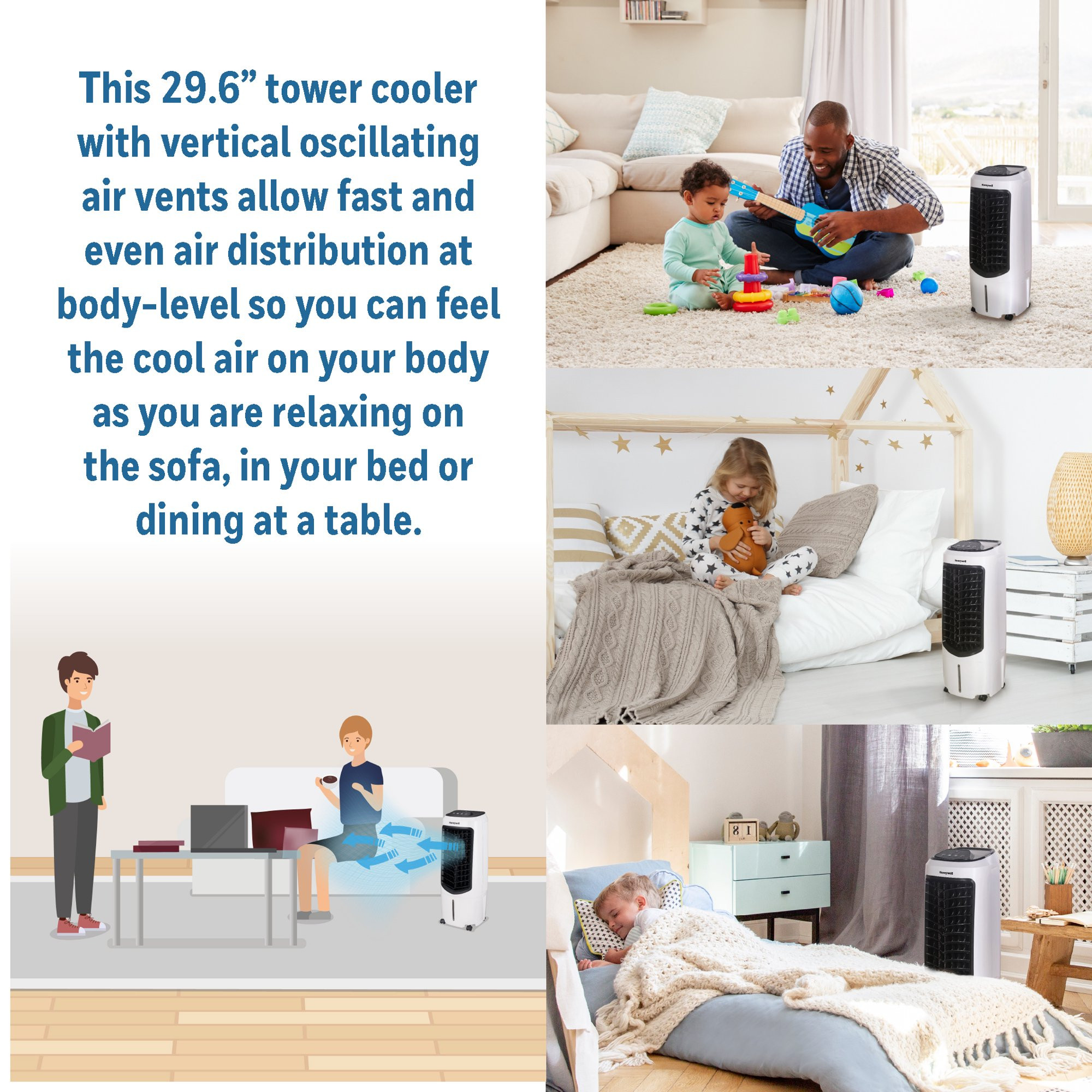 Honeywell TC10PEU 29.6″ Portable Evaporative Cooler with Fan. Humidifier & Remote. White
