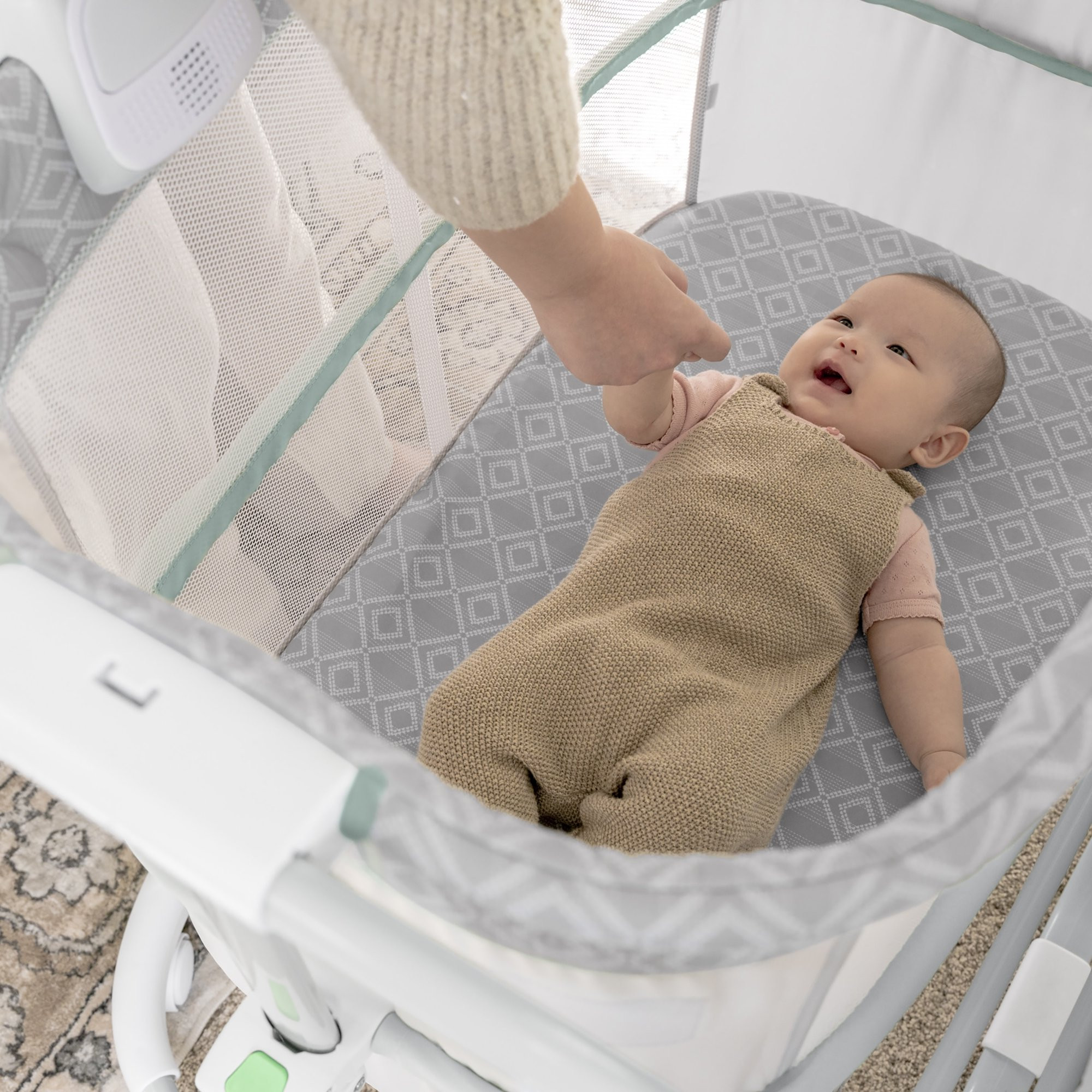 Ingenuity Dream & Grow Bedside Baby Bassinet 2-Mode Crib 0-12 Months. Adjustable Height - Tesse (Gray. Green)
