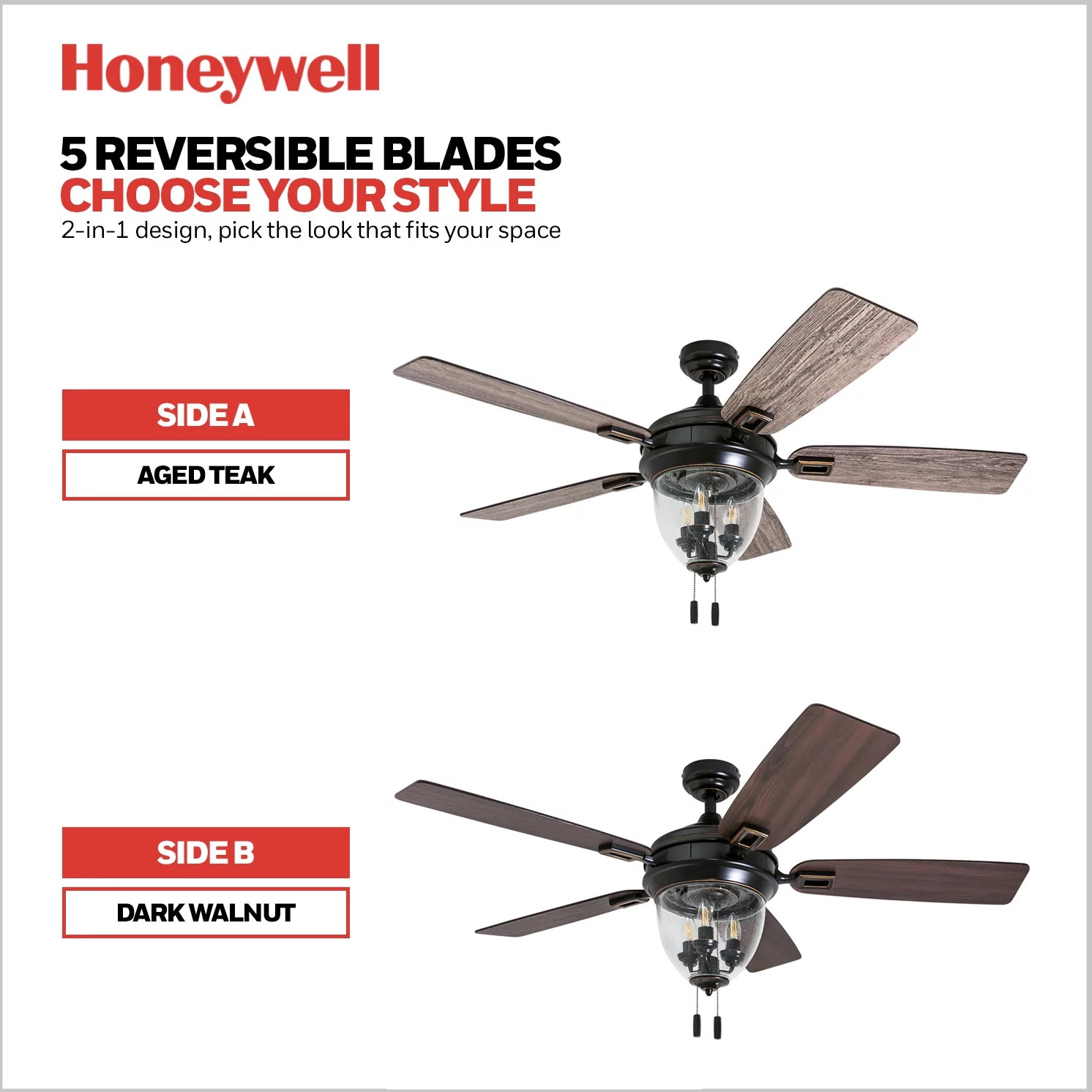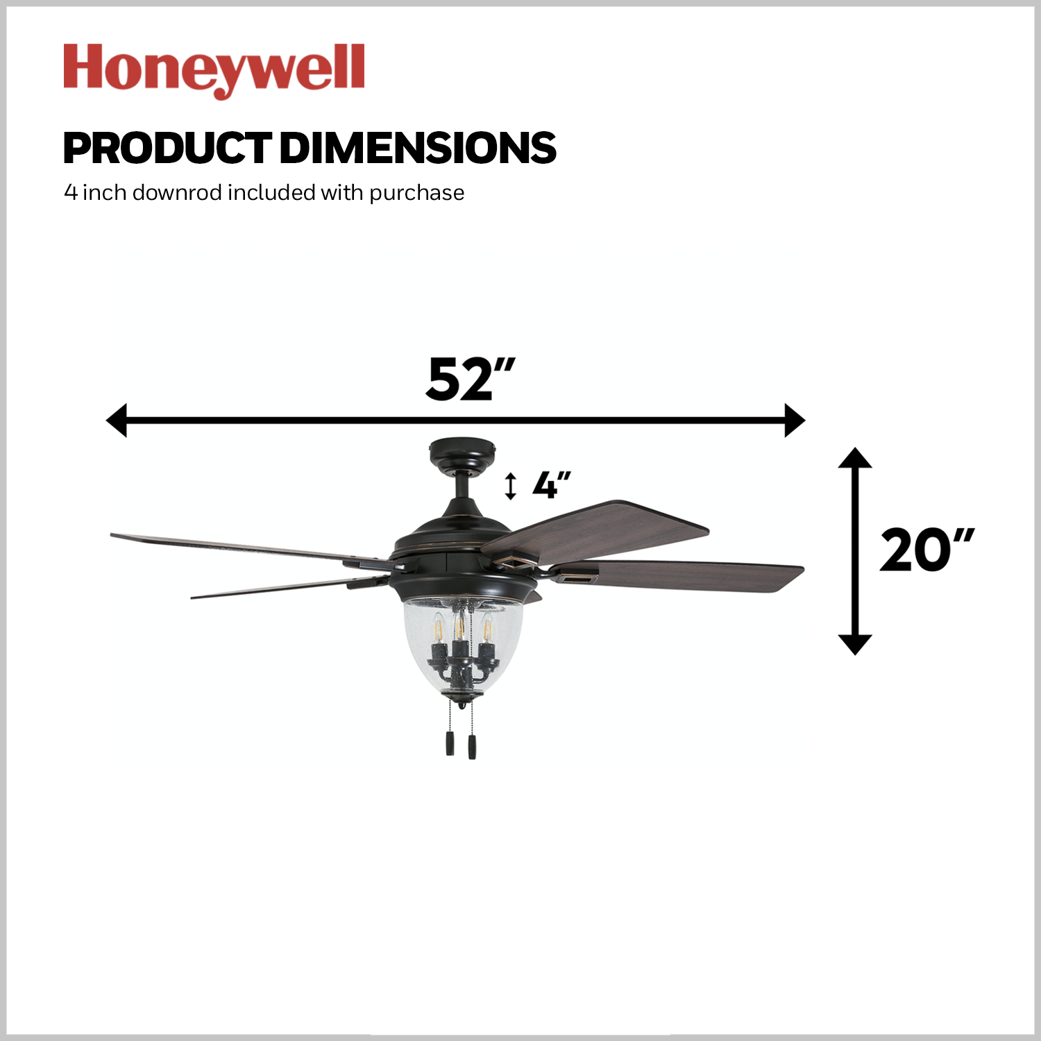 Honeywell Glencrest 52-Inch Craftsman Industrial Oil Rubbed Bronze LED Outdoor Ceiling Fan with Light