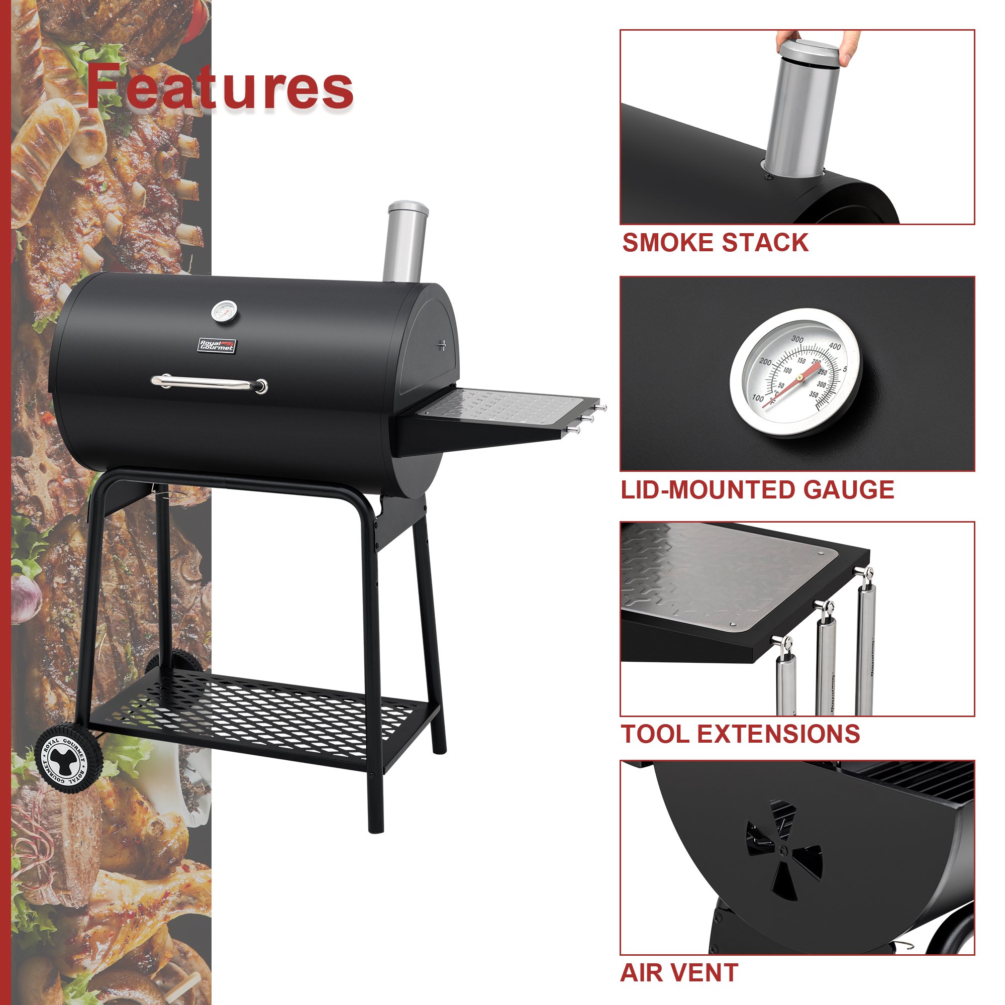 Royal Gourmet 30″ CC1830 627 Square inches Barrel Charcoal Grill with Side Table