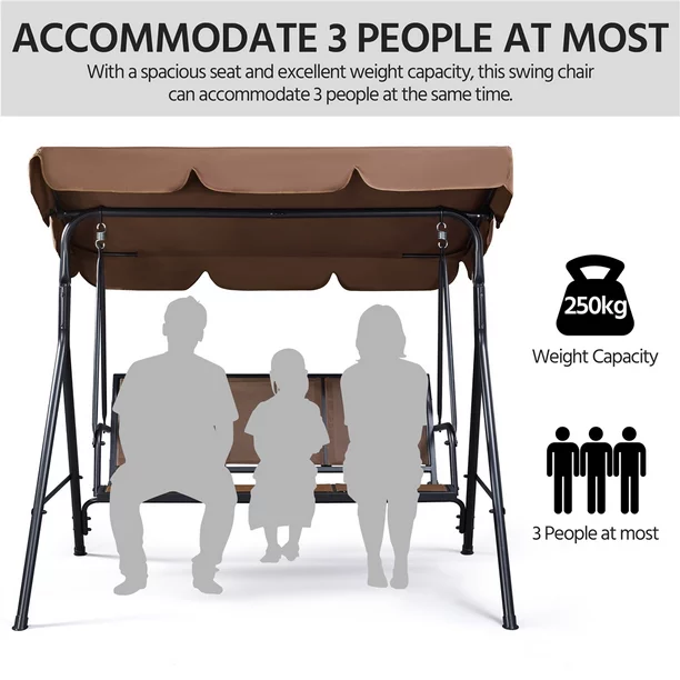 SmileMart 3-Seat Patio Canopy Porch Hanging Swing Chair for Outdoor. Dark Brown