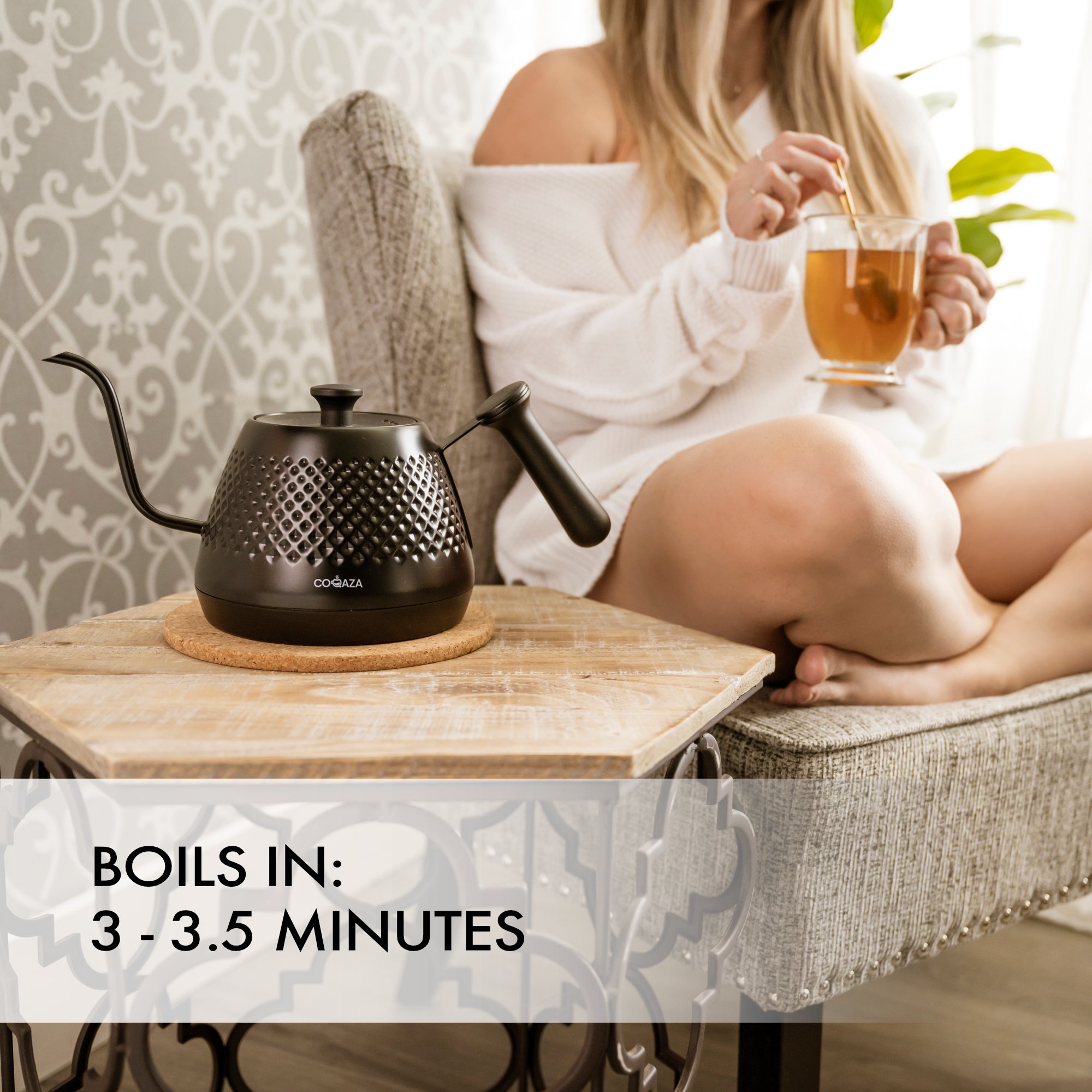 Coqaza Electric Gooseneck Kettle. Pour Over Coffee kettle and Tea Maker. 0.6L