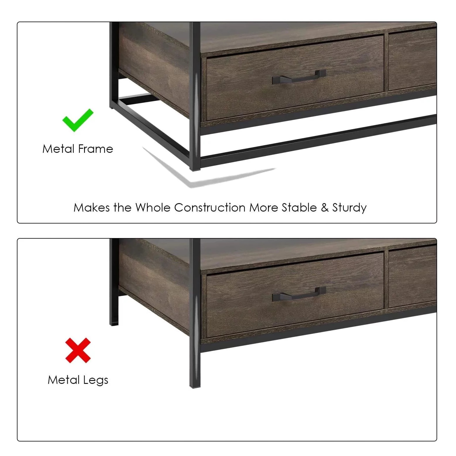 Homfa 43″ Wooden Coffee Table with Storage Shelf and 2 Drawers. Rustic Center Table for Home Office. Dark Brown