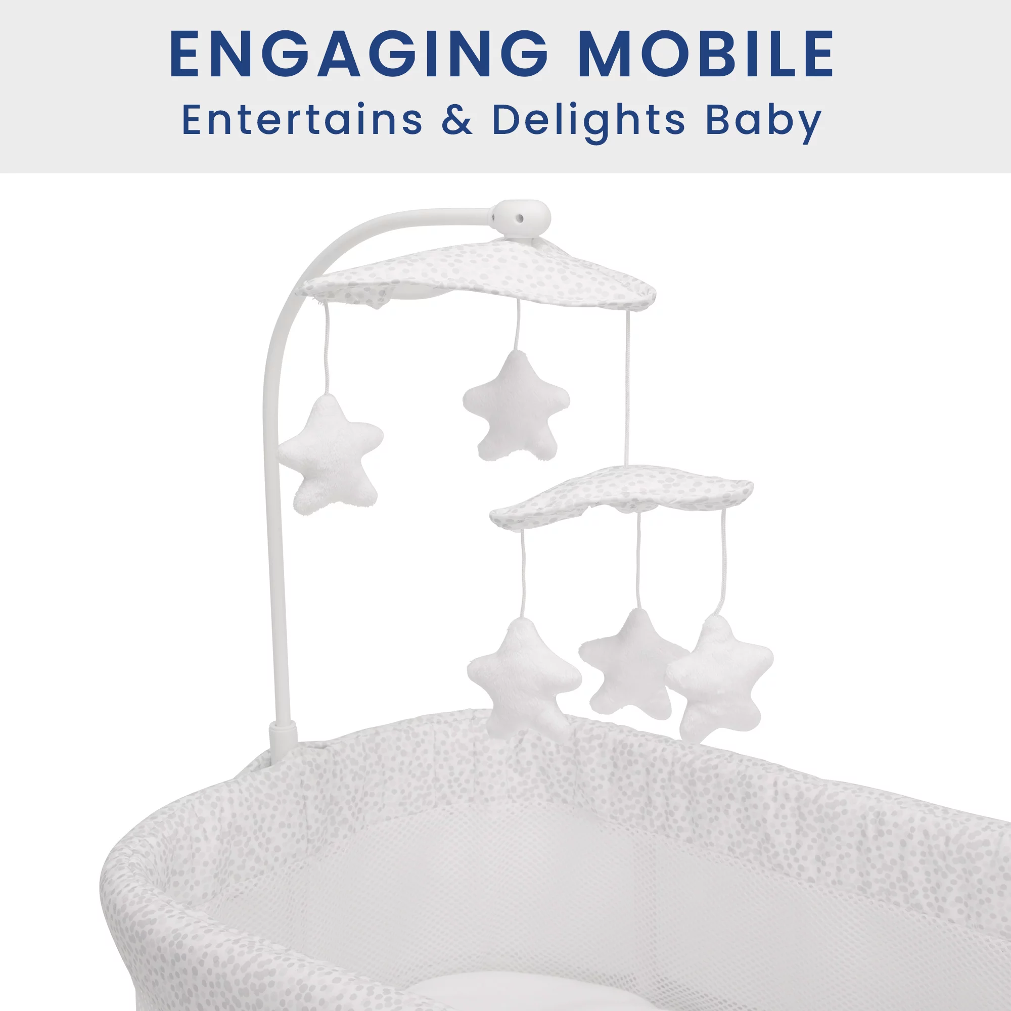 Delta Children SmartSleep Auto Glide Bassinet with Bluetooth. Alloy