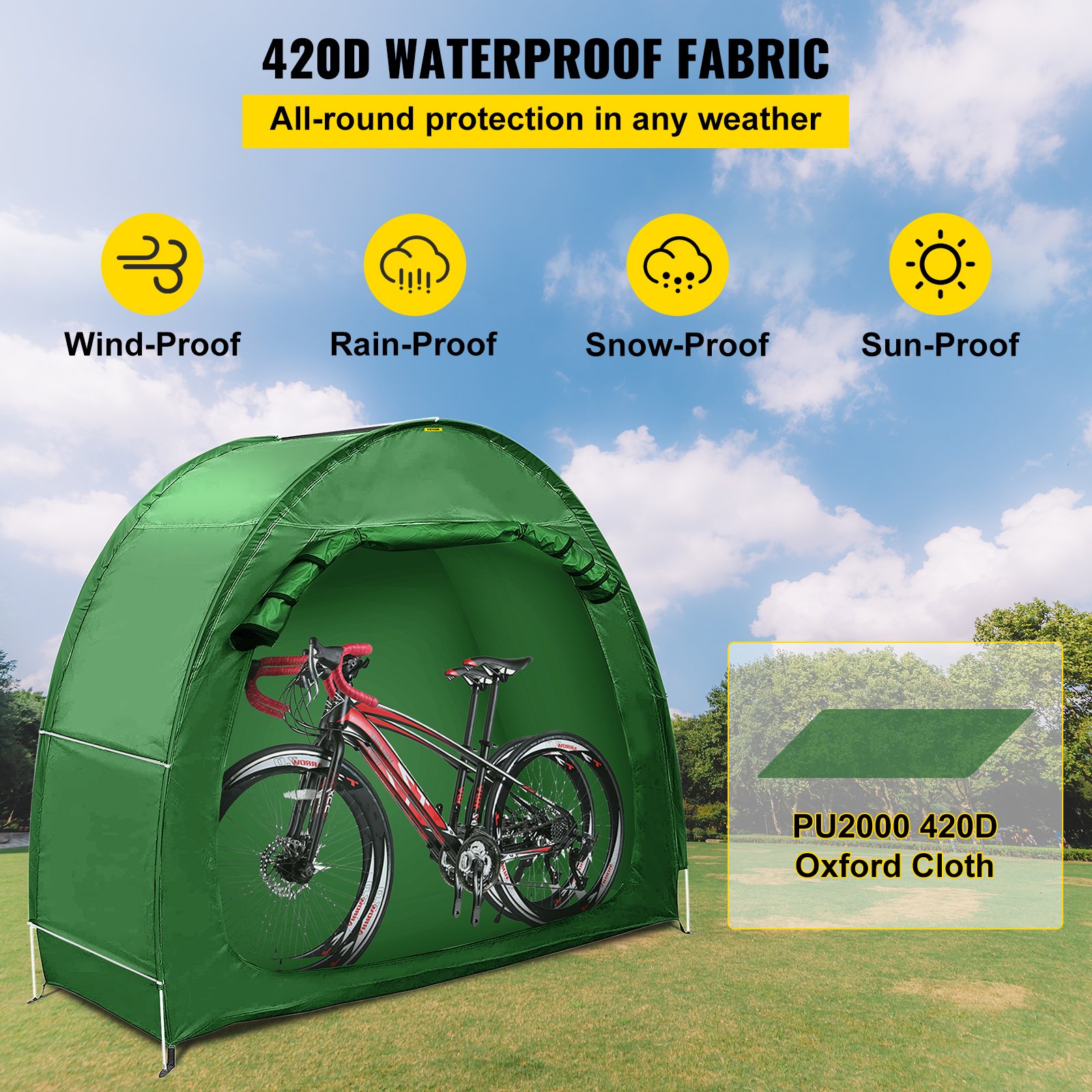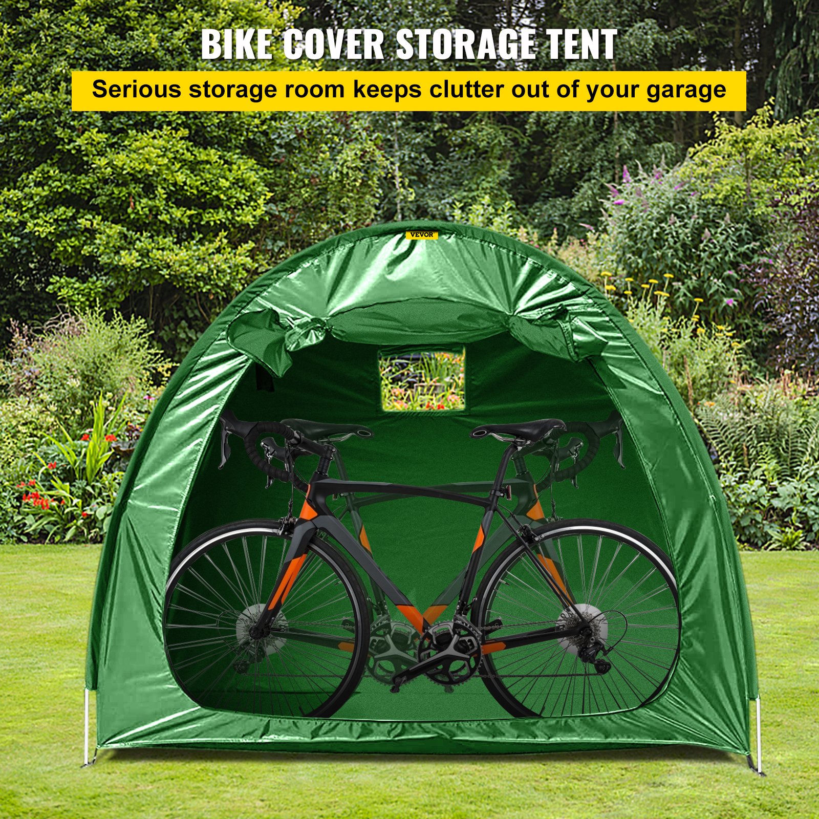 Vevor Bike Cover Storage Tent. Outdoor Waterproof Portable For 2 Bikes. Green