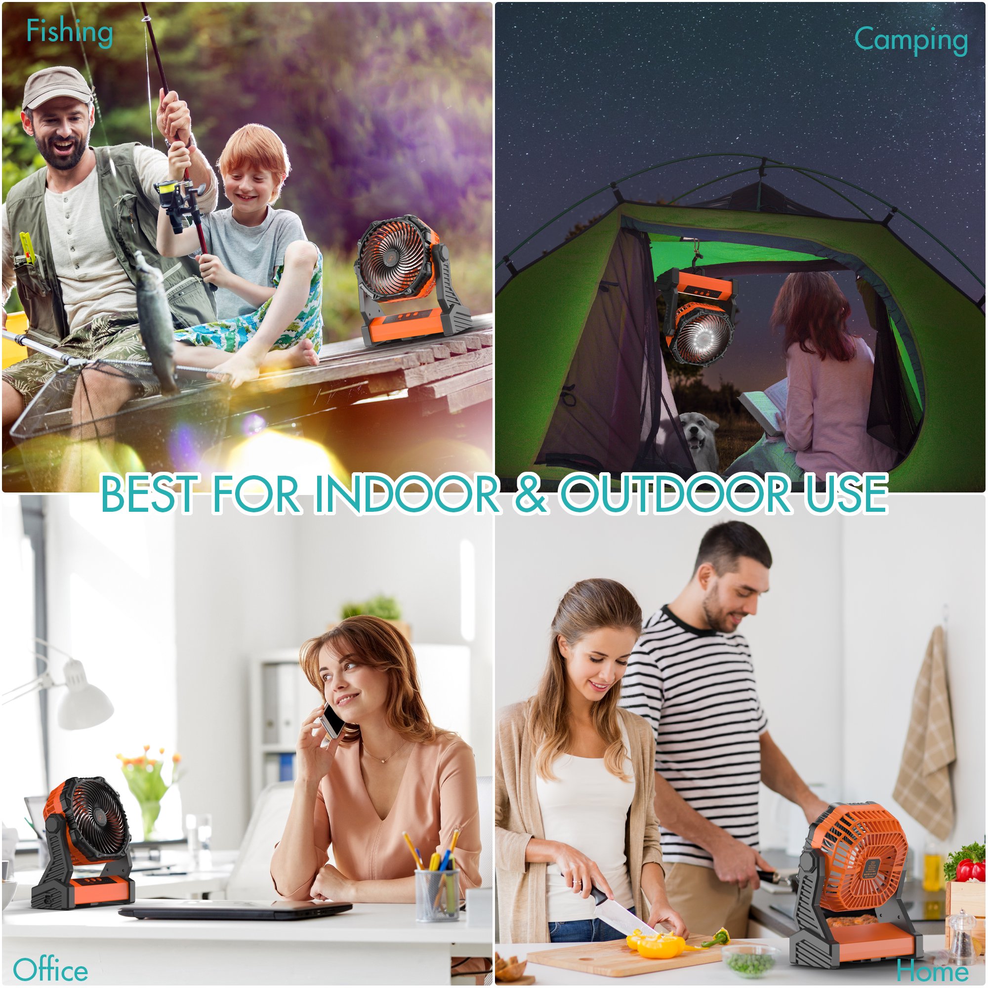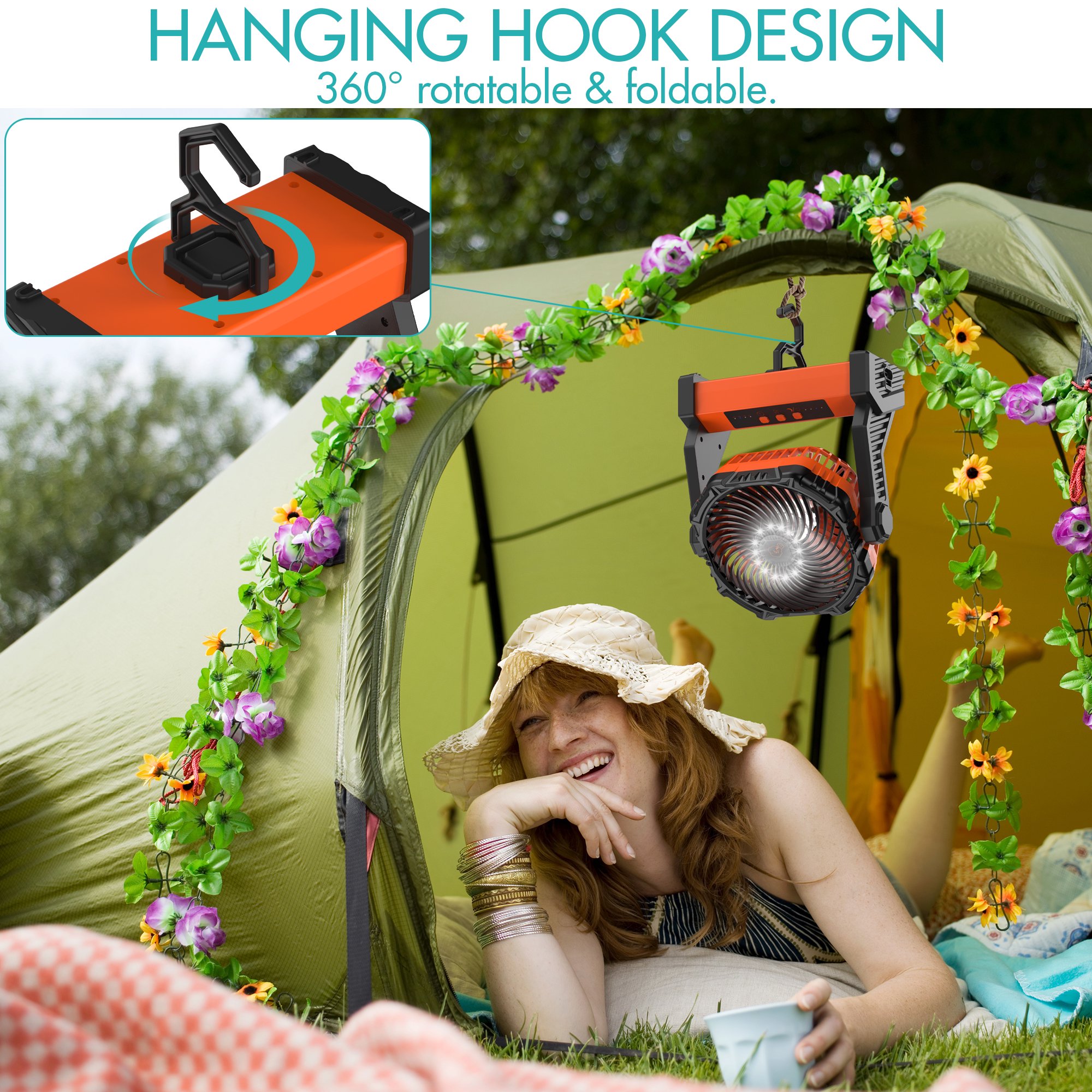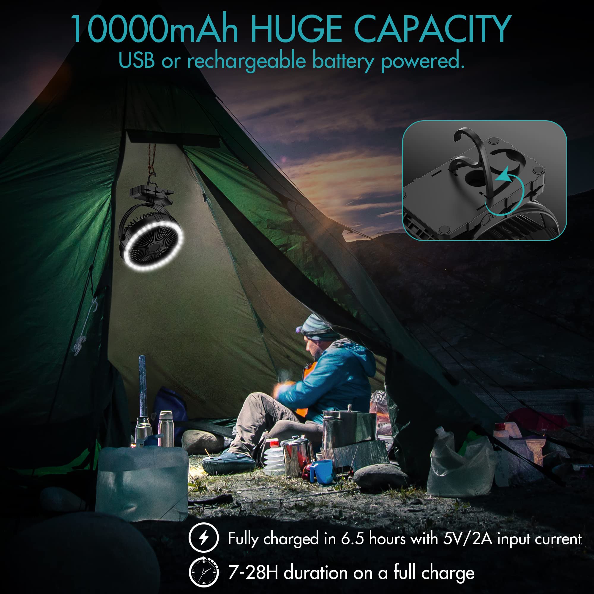 Panergy Camping Fan with LED Lantern. 10000mAh Rechargeable Battery Operated