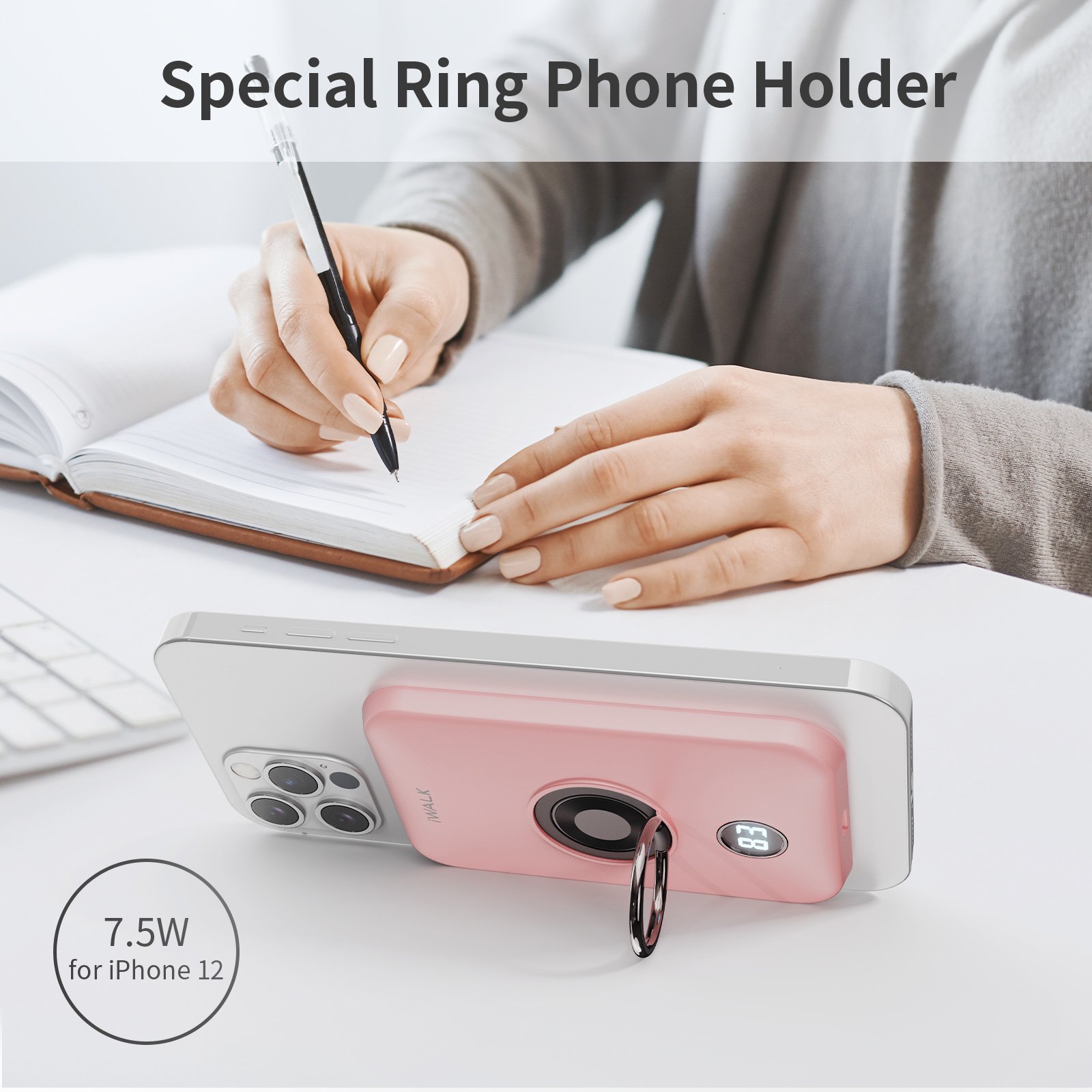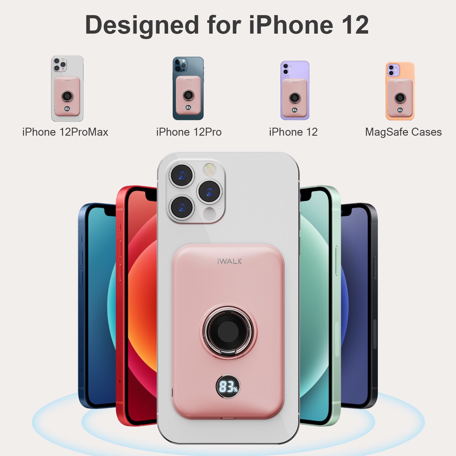 iWALK Magnetic Wireless Charger Power Bank 6000mAh. Compatible with New iphone 14/14 Plus. iphone 14 Series. Pink