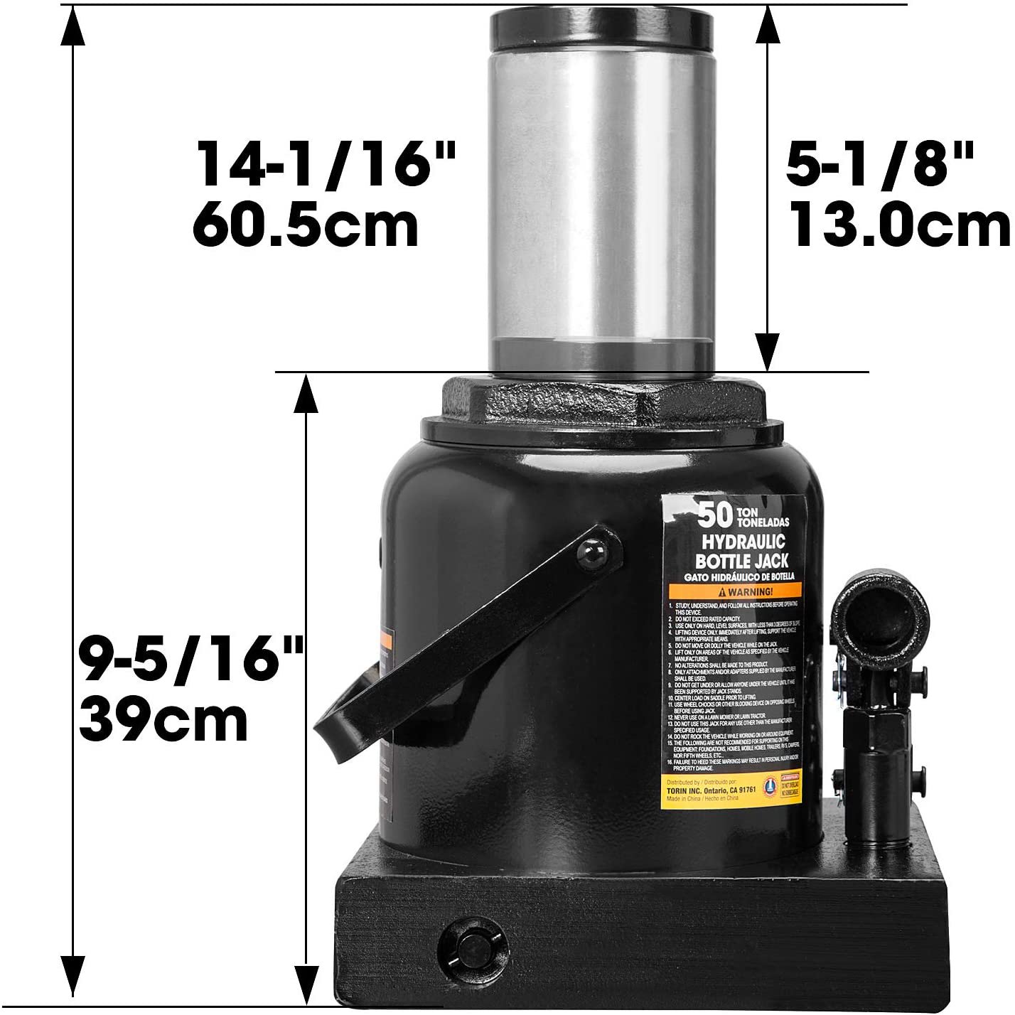 Torin Jacks DT95007B Hydraulic Stubby Low Profile Welded Bottle Jack. 50 Ton (100.000 lb) Capacity. Black