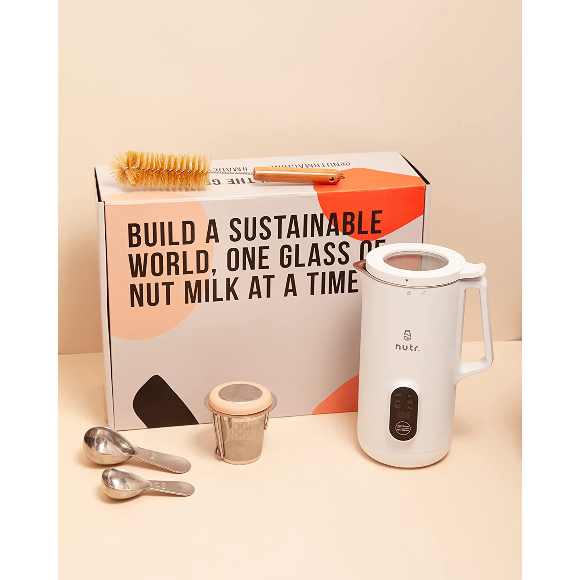 Nutr Machine Automatic Nut Milk Maker. Boil and Blend Single Servings. Stainless Steel. Self-Cleaning. White