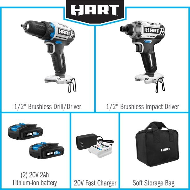 Hart 20-Volt Cordless Brushless Drill And Impact Combo Kit