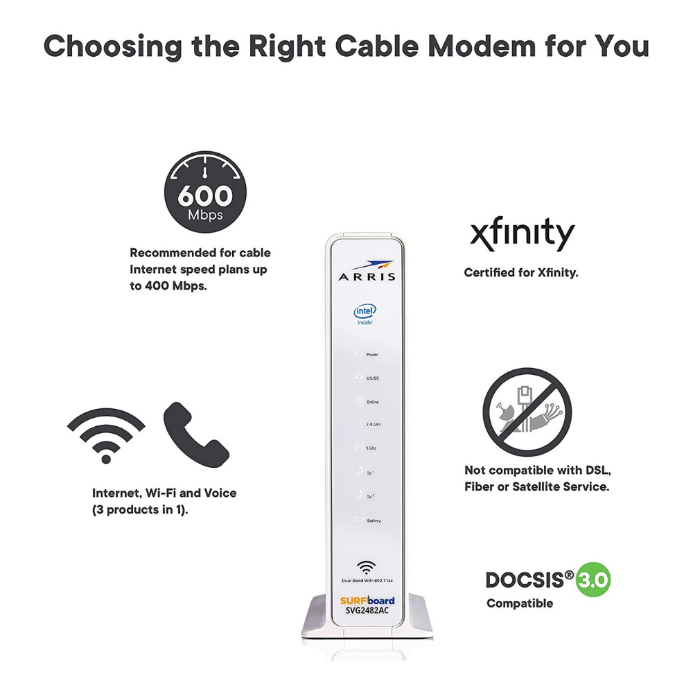 Arris Surfboard SVG2482AC DOCSIS 3.0 Cable Modem & AC1750 Dual-Band Wi-Fi Router With Voice