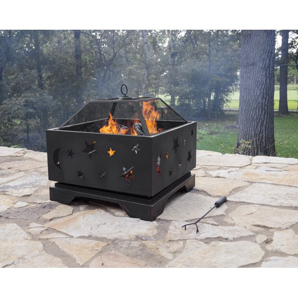 Pleasant Hearth Stargazer Square Steel Wood Burning Fire Pit