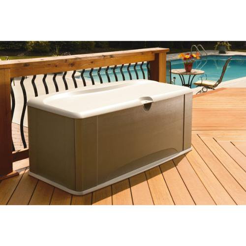 Rubbermaid Outdoor Extra-Large Deck Box with Seat. Gray & Brown. 121 Gallon