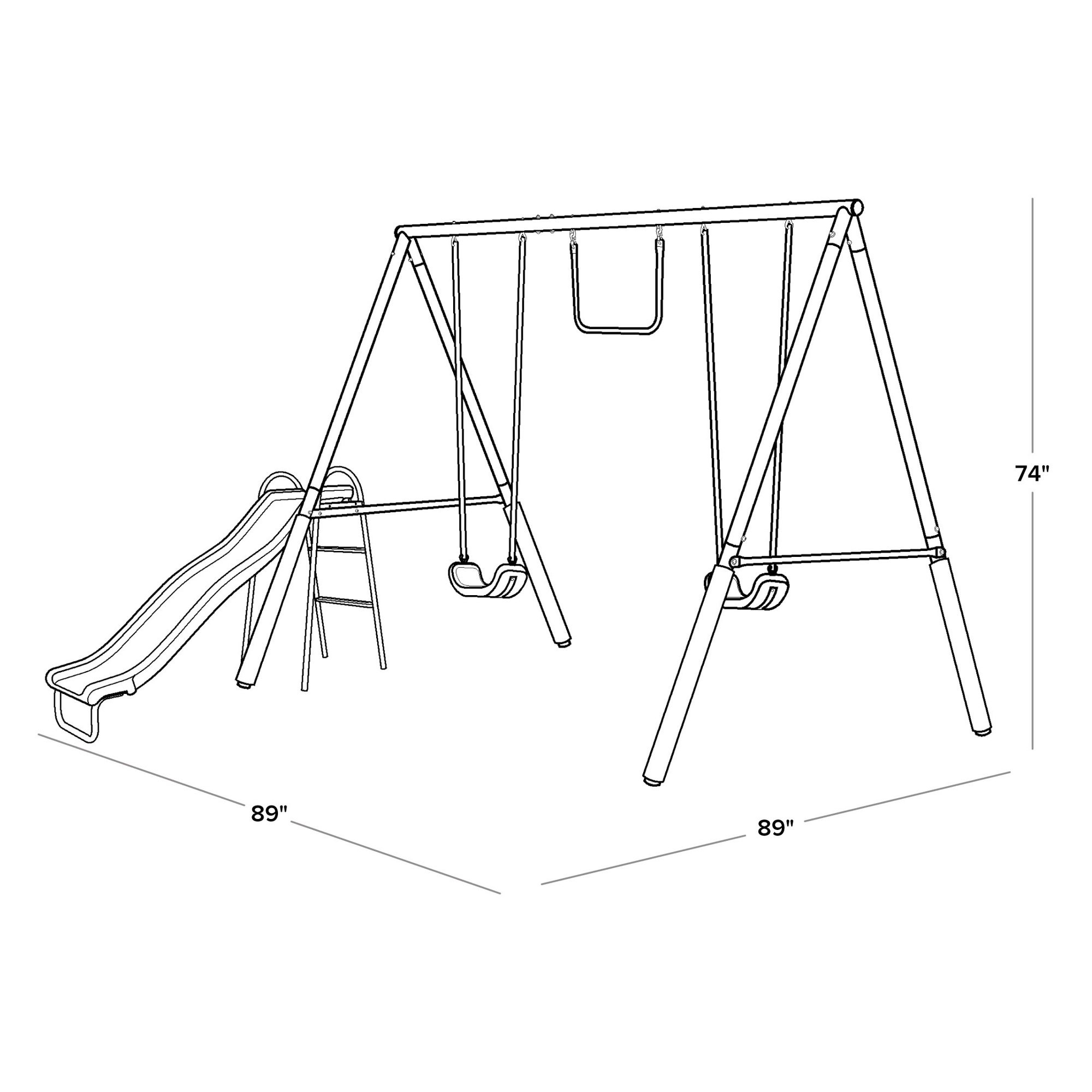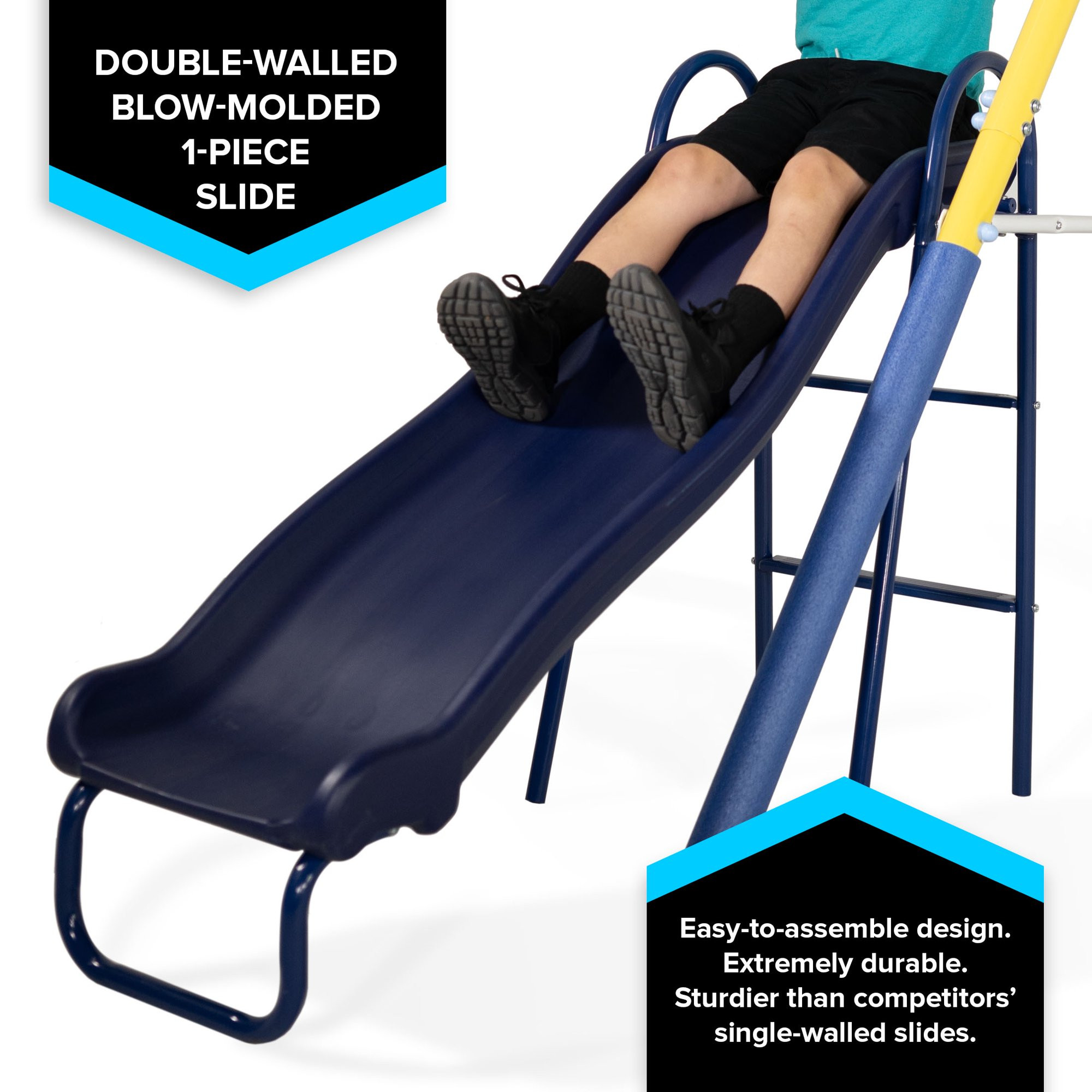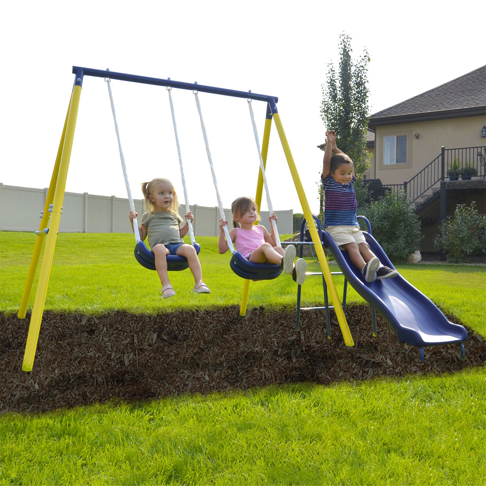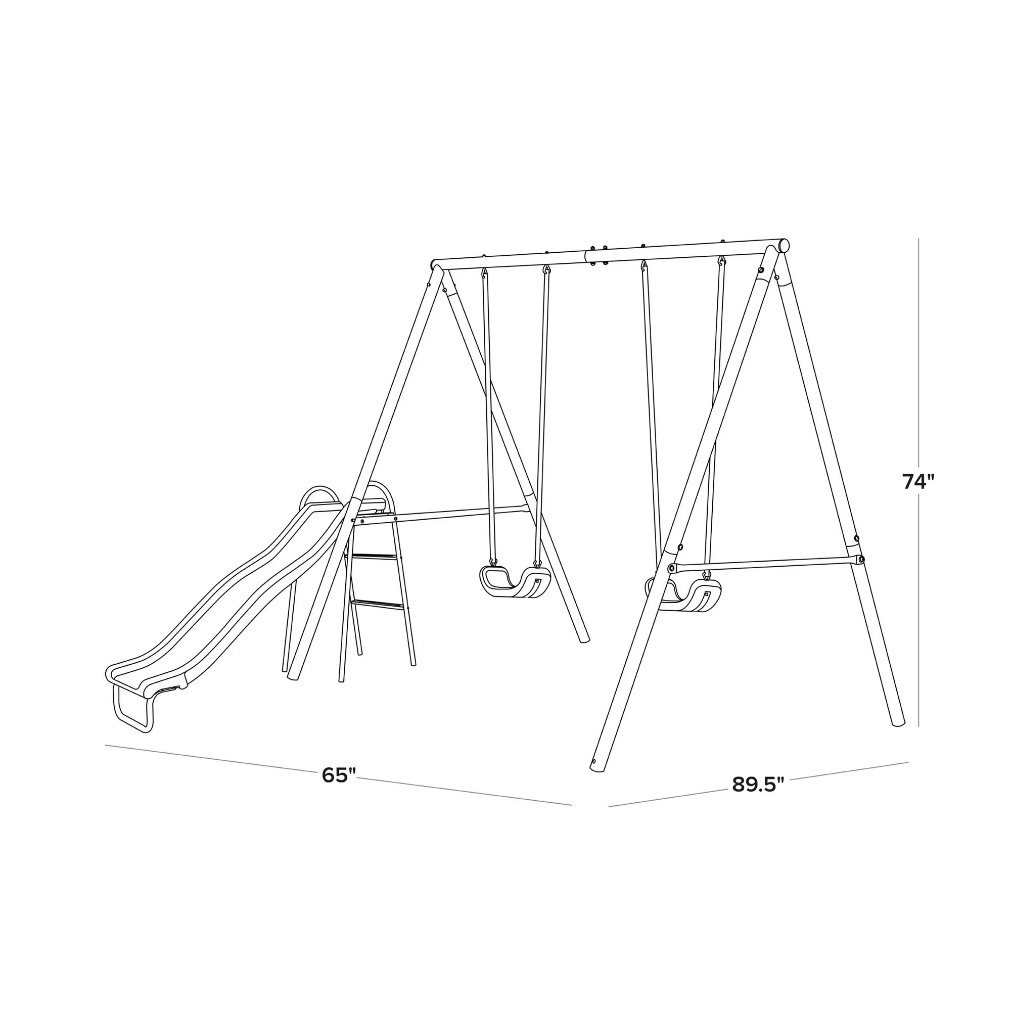 Sportspower Power Play Time Metal Swing Set with 5ft Heavy Duty Slide and Two Swings