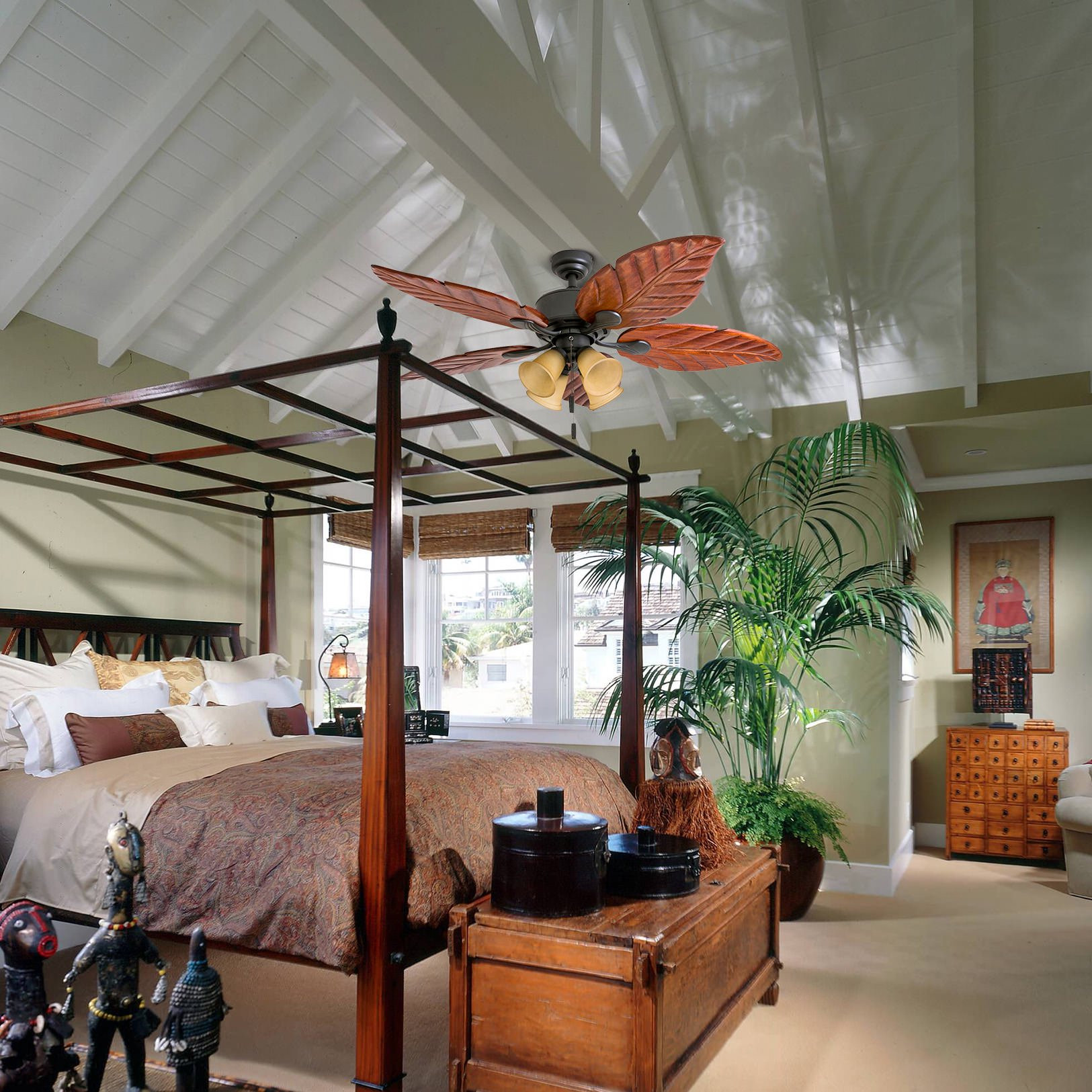 Honeywell Royal Palm 52-Inch Bronze Tropical LED Ceiling Fan with Light. Hand Carved Blades