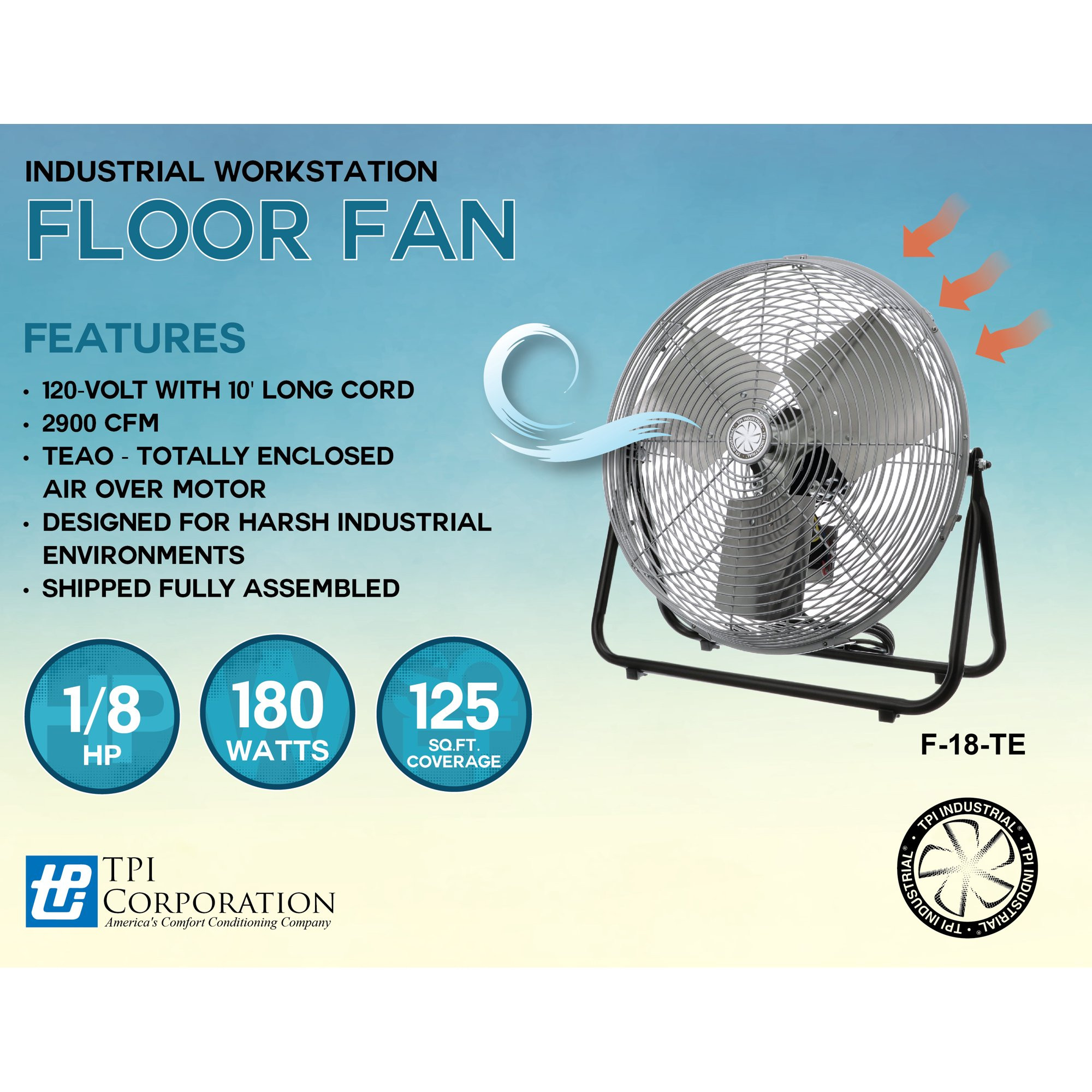 TPI Corporation F18-TE Industrial Workstation Fan. Floor Stand. 3-Speed Motor. Rocker Switch