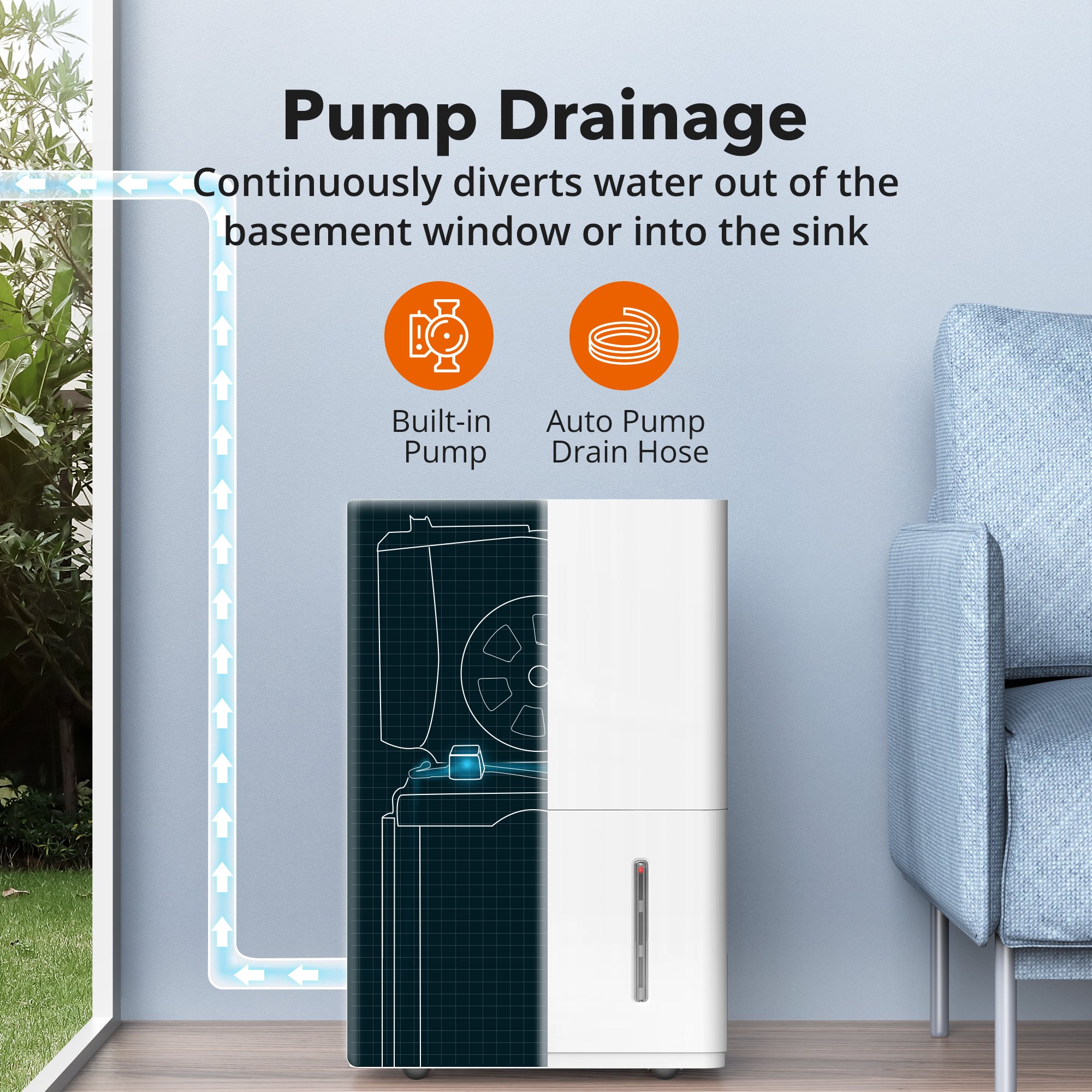 TaoTronics TT-EE015 50 Pint Dehumidifier with Pump. Intelligent Humidity Control. 4.500 Sq. Ft. for Basements