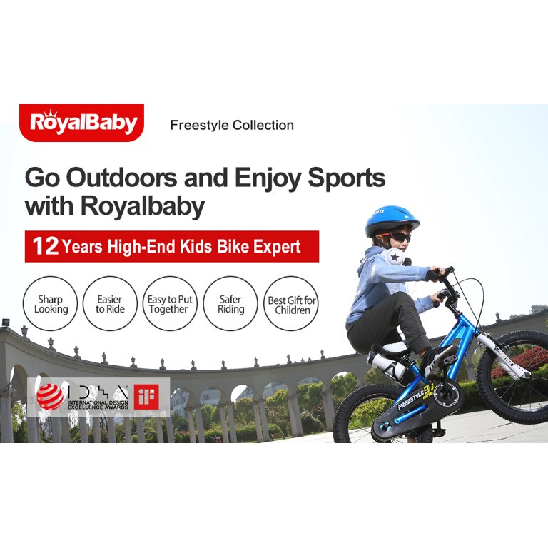 Royalbaby Freestyle 16 In. Blue Kids Bike with Training Wheels and Kickstand