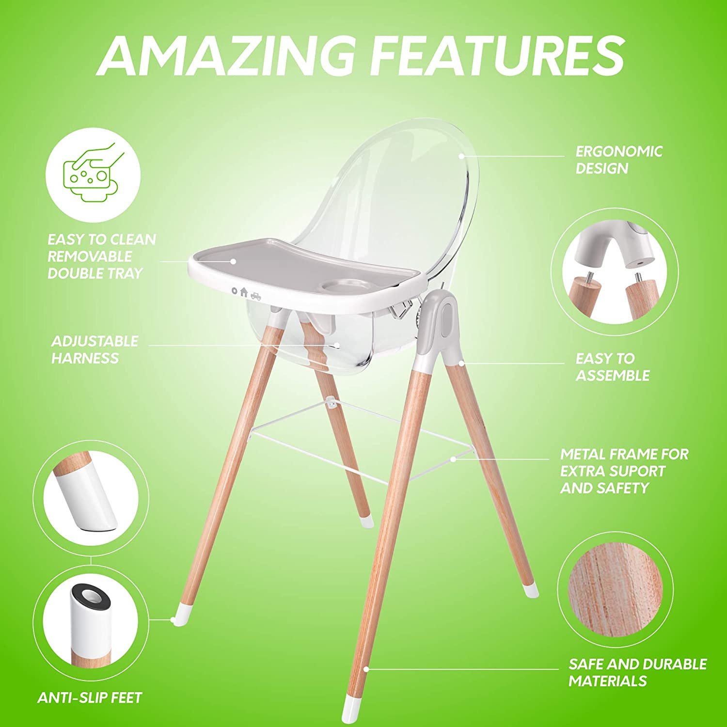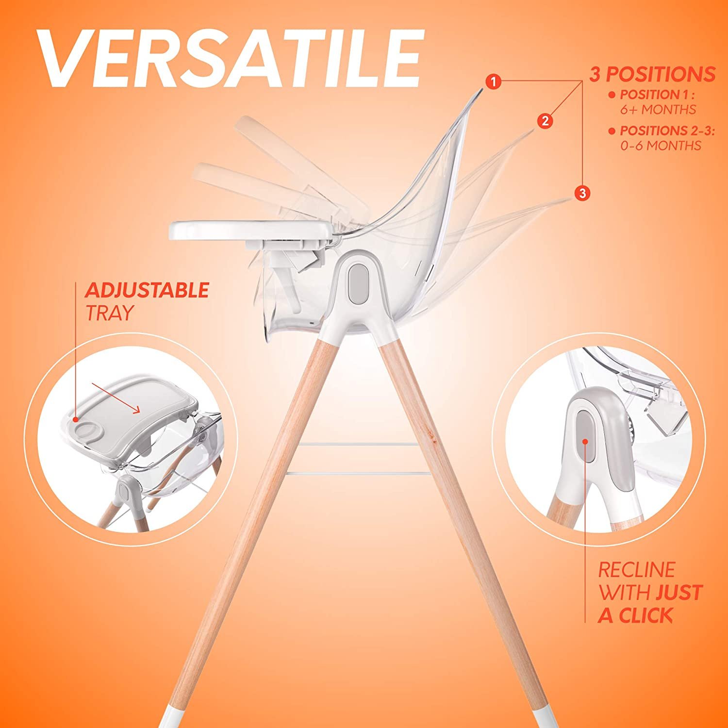 Children of Design 6-in-1 Deluxe High Chair. Safe & Compact Baby Highchair. 6 Options 3 Seat Positions 2 Heights 1 Chair. Gray