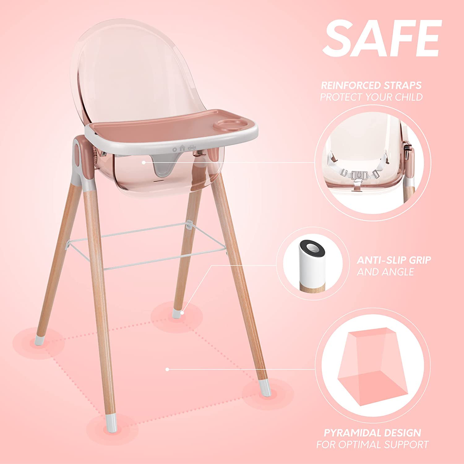 Children of Design 6-in-1 Deluxe High Chair. Safe & Compact Baby Highchair. 6 Options 3 Seat Positions 2 Heights 1 Chair. Pink