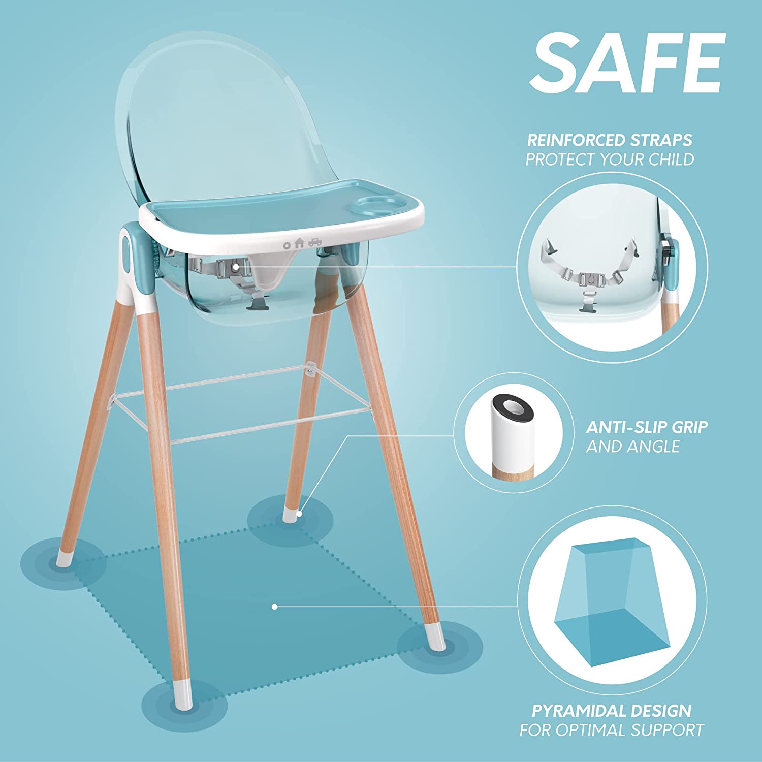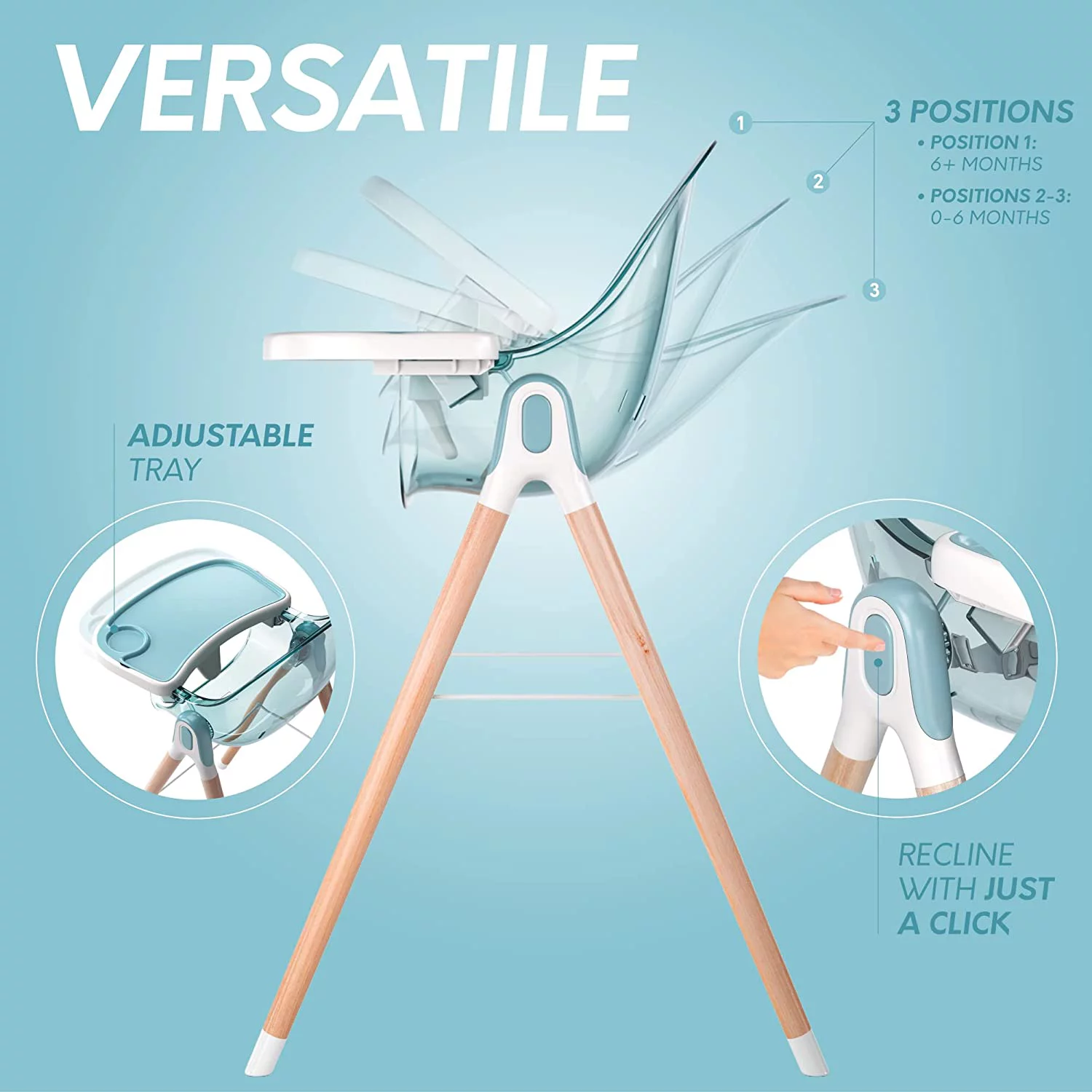 Children of Design 6-in-1 Deluxe High Chair. Safe & Compact Baby Highchair. 6 Options 3 Seat Positions 2 Heights 1 Chair. Blue
