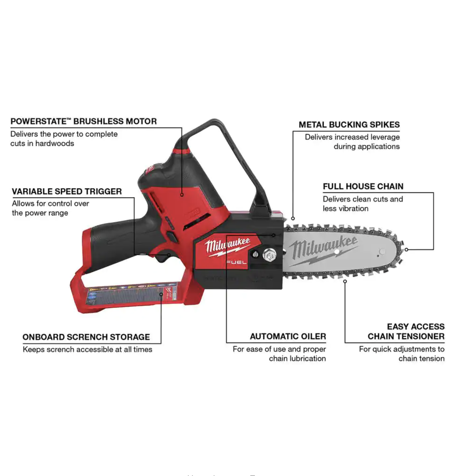 Milwaukee M12 FUEL 12-Volt Lithium-Ion Brushless Cordless 6 in. HATCHET Chainsaw (Tool-Only) with Extra 6 in. Chain (2527-20-49-16-2732)
