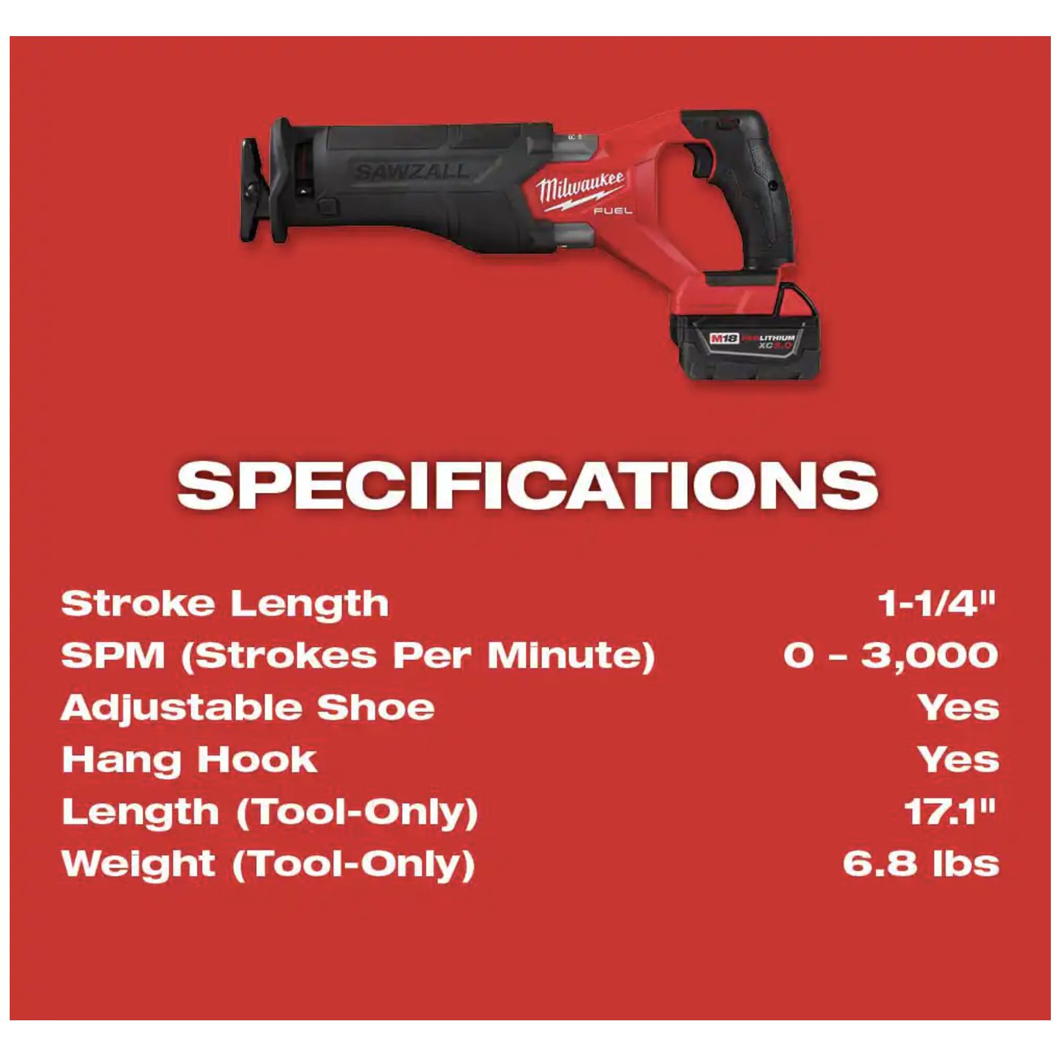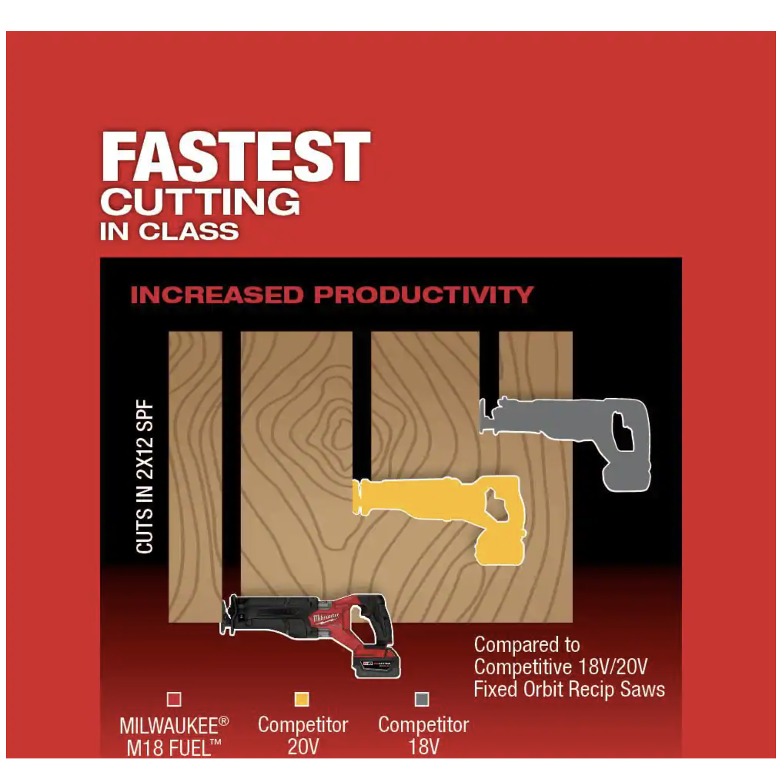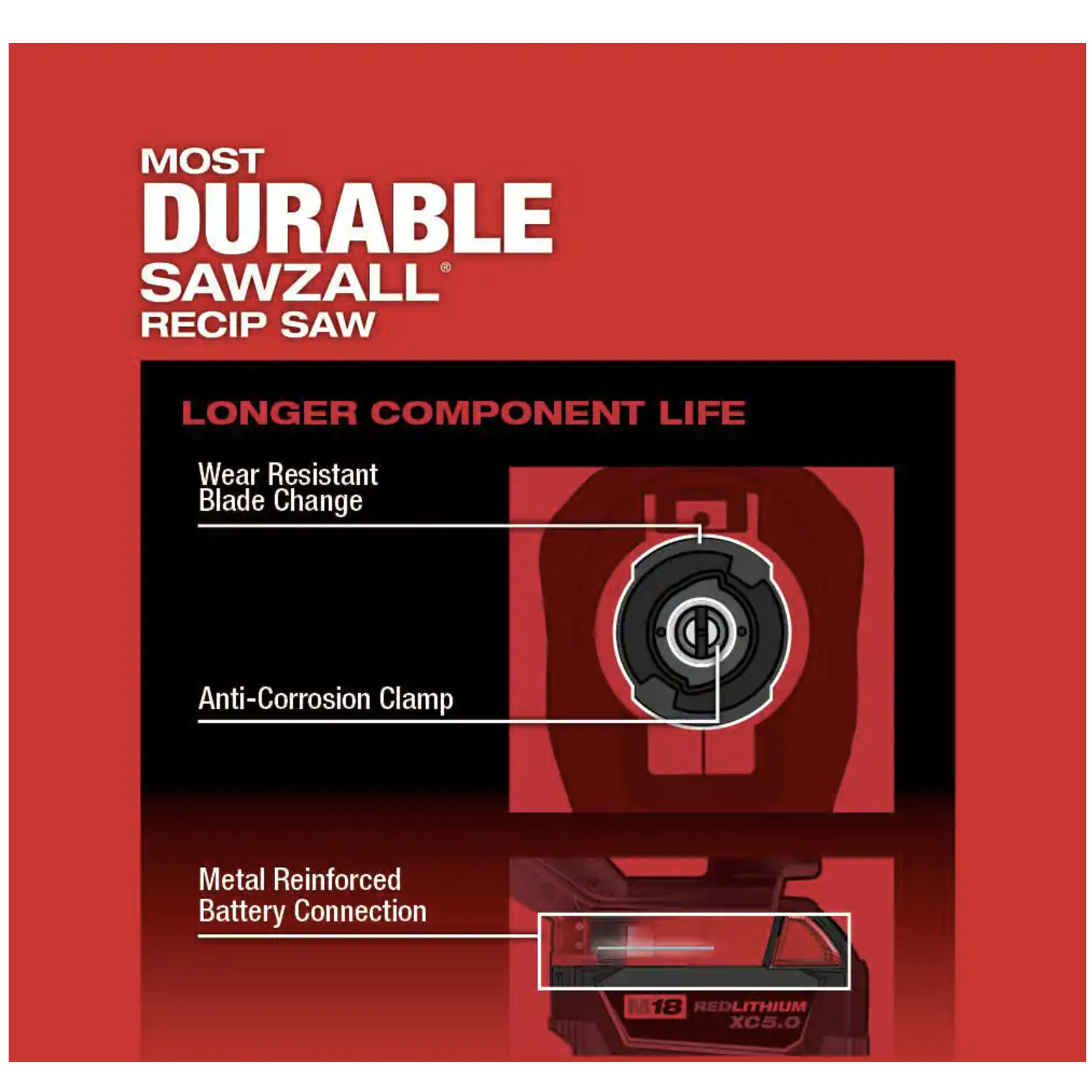 Milwaukee M18 FUEL 18V Lithium-Ion Brushless Cordless SAWZALL Reciprocating Saw Kit W/one 5.0 Ah Batteries. Charger & Case (2821-21)