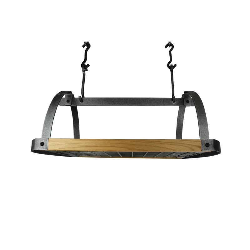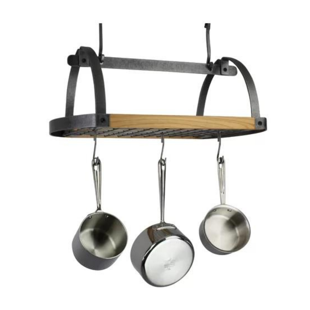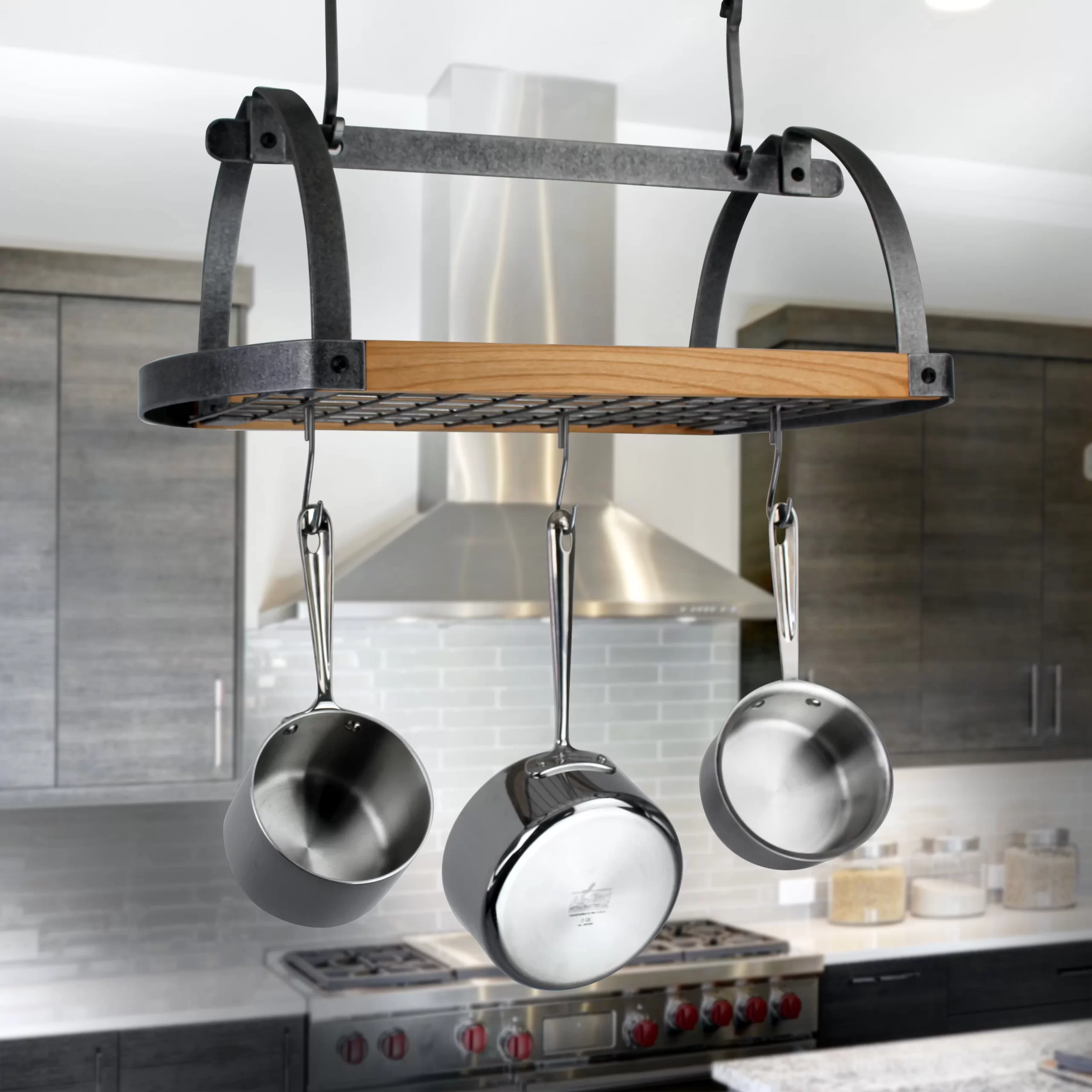 Enclume Handcrafted Decor Oval Ceiling Hanging Pot Rack. Hammered Steel/Alder Wood