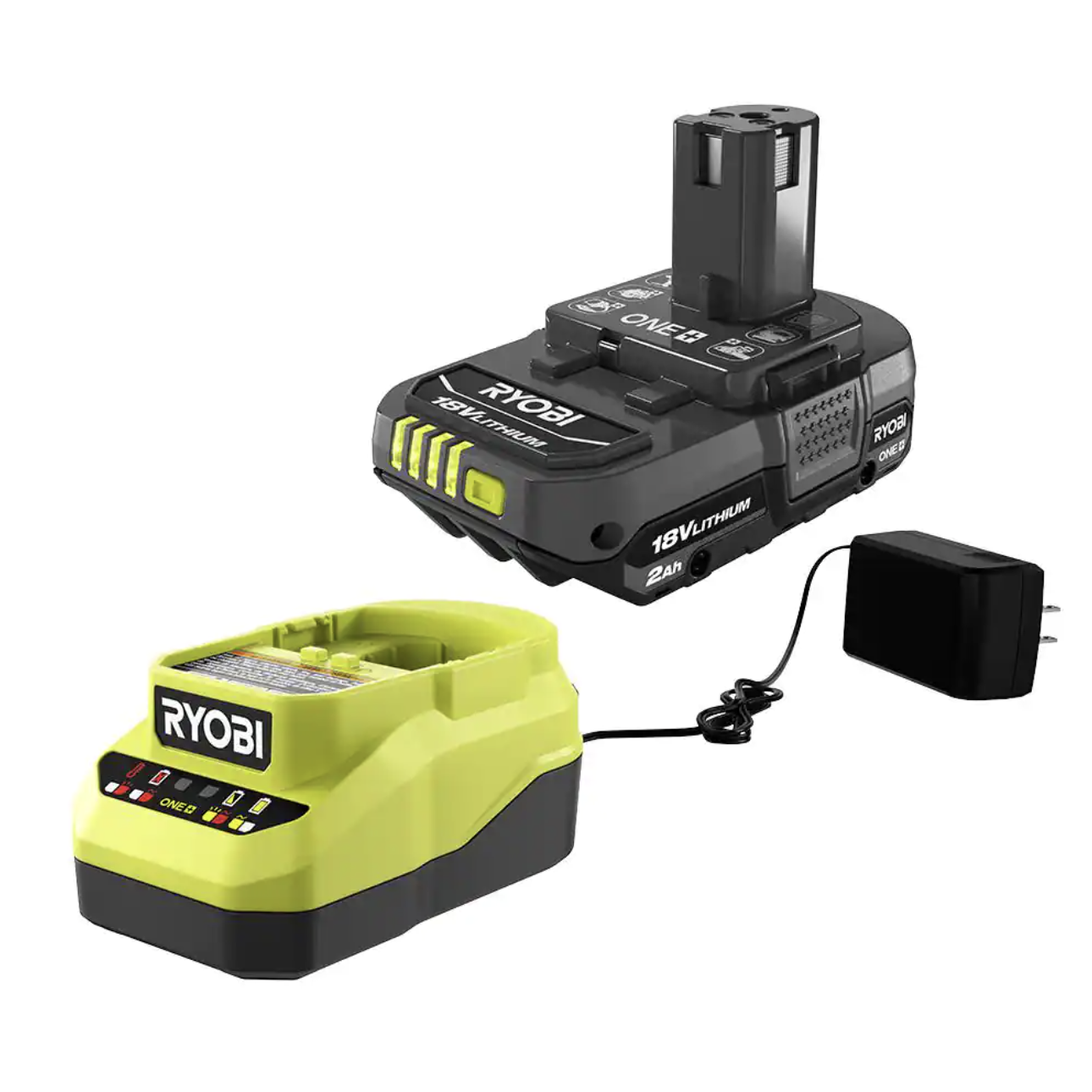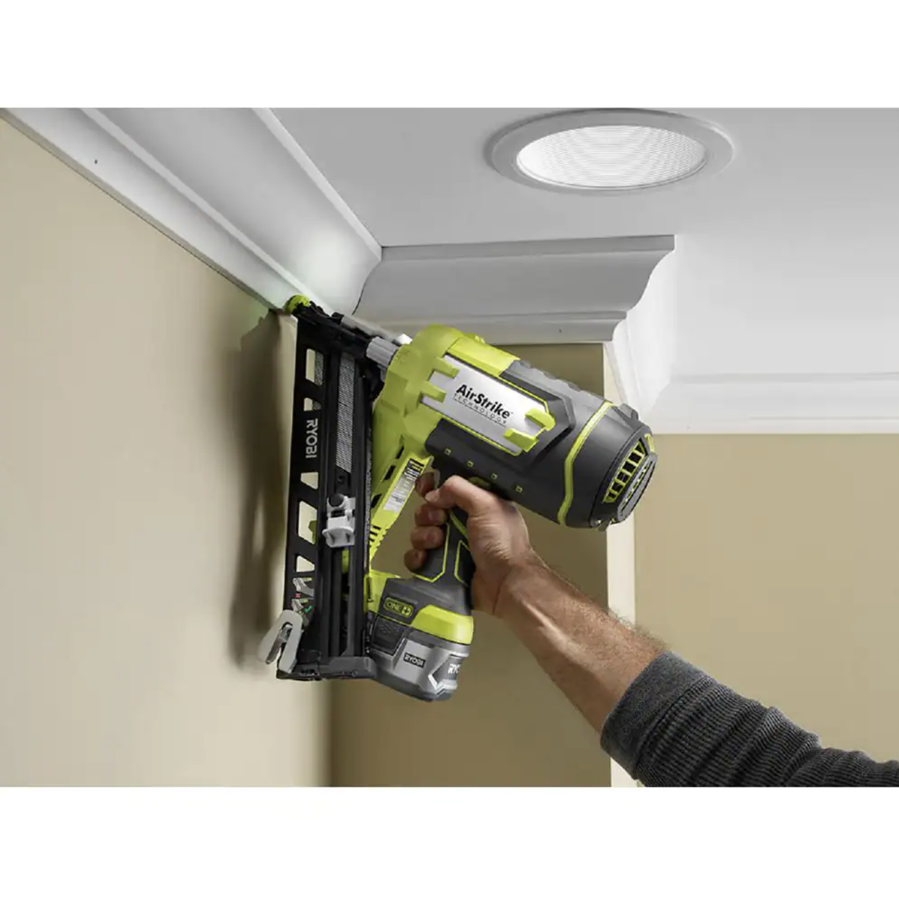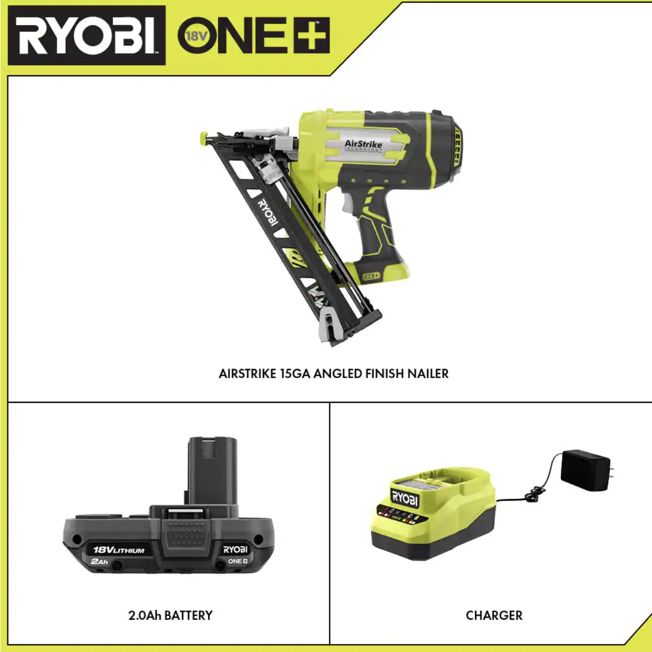 Ryobi ONE+ 18V Cordless AirStrike 15-Gauge Angled Finish Nailer and 2.0 Ah Compact Battery and Charger Starter Kit (P330-PSK005)