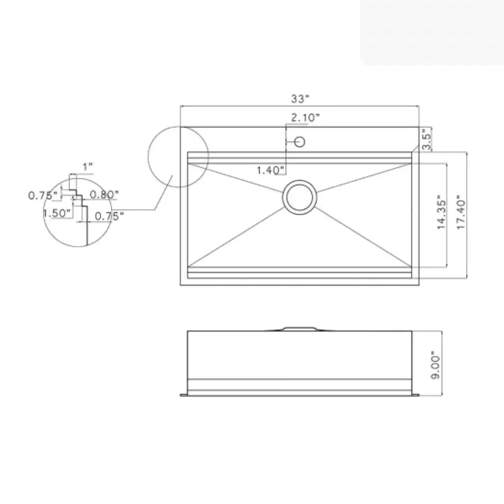 Akdy Handcrafted All-in-One Drop-In 33 in. x 22 in. x 9 in. Single Bowl Kitchen Sink in Stainless Steel with Accessories