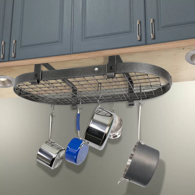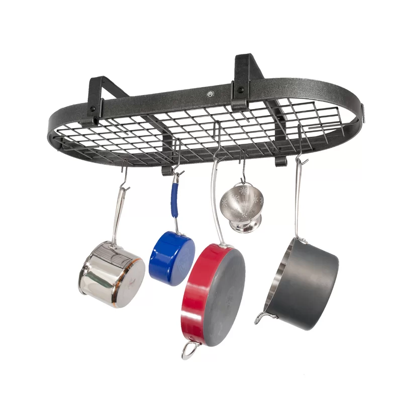 Enclume Premier Handcrafted Low Ceiling Oval Pot Rack. Hammered Steel