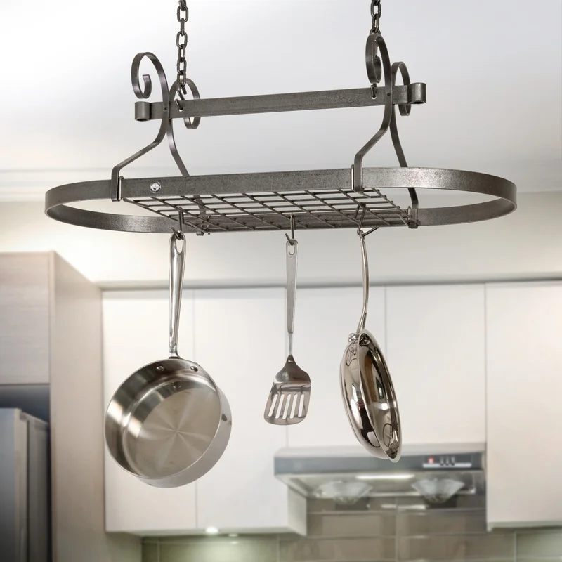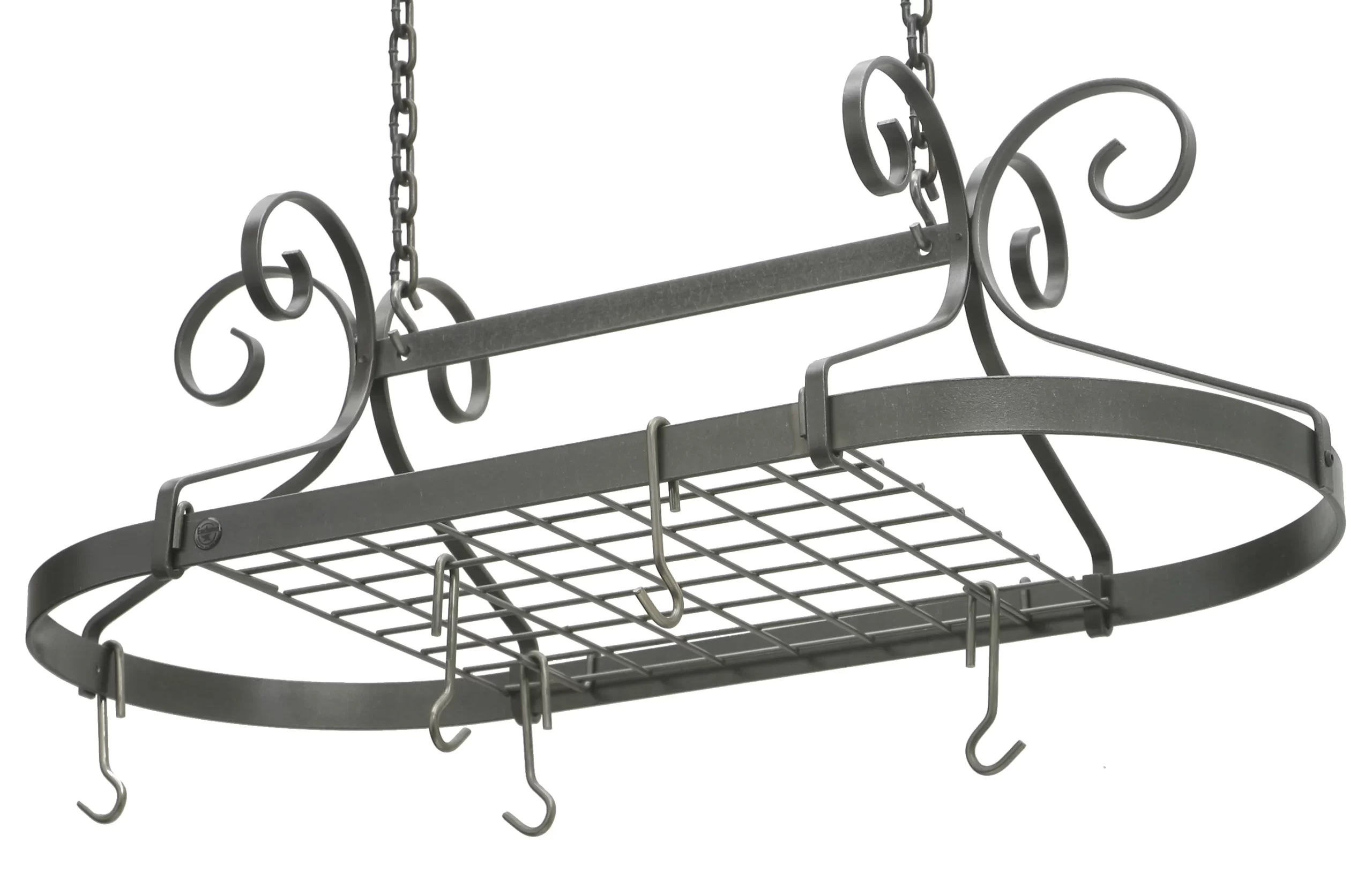 Enclume USA Handcrafted Decor Scrolled Oval Hanging Pot Rack. Hammered Steel