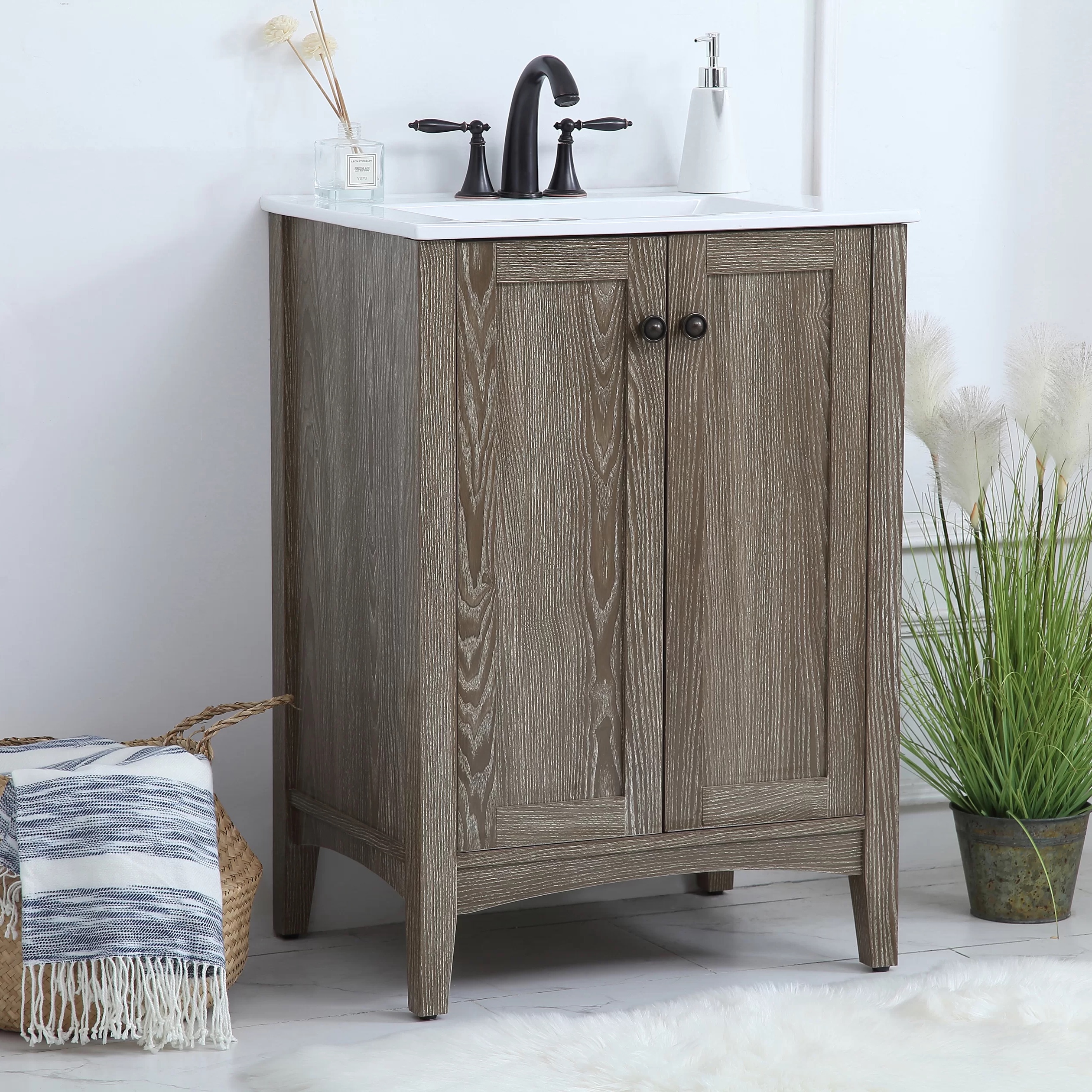 Andover Mills Miltonsburg 24” Free-standing Single Bathroom Vanity. Weathered Oak