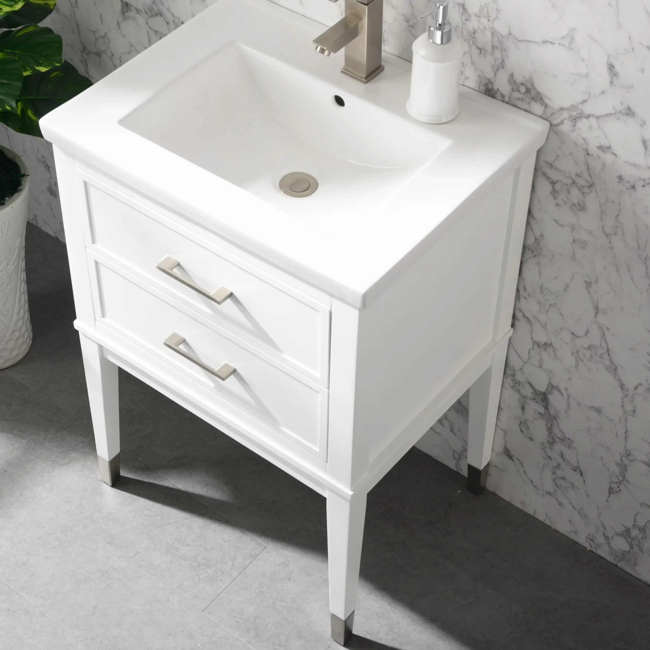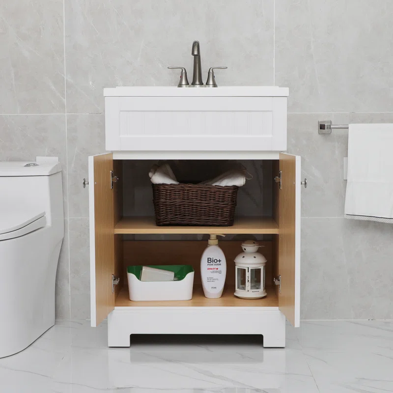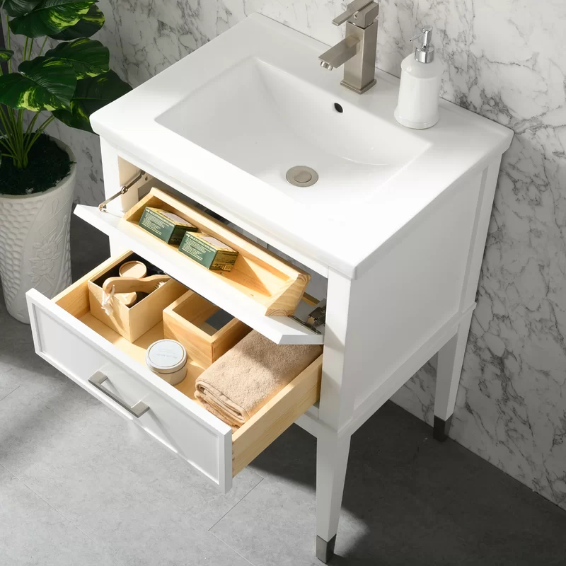 Everly Quinn Deon 24” Free-standing Single Bathroom Vanity. White
