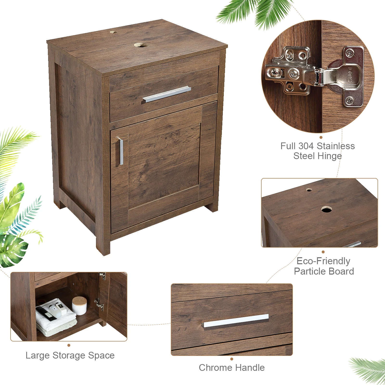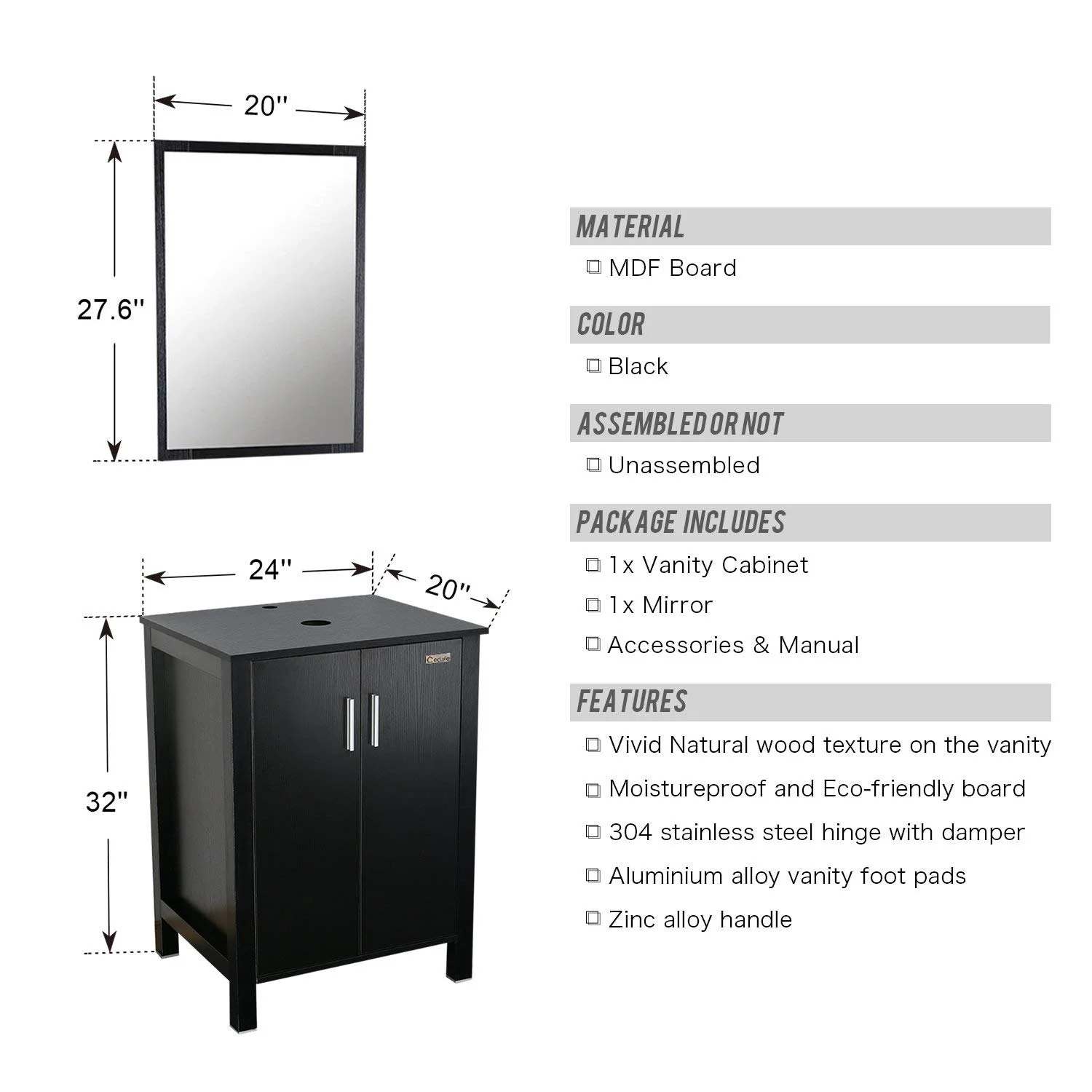 Eclife 24'' Free-standing Single Bathroom Vanity Set With Mirror