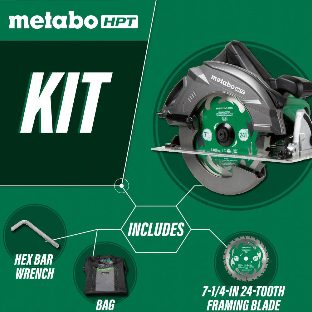 Metabo HPT 7-1/4 In. Pro Grade Circular Saw 15 Amp 6800 RPM Rip Max (C7URM)