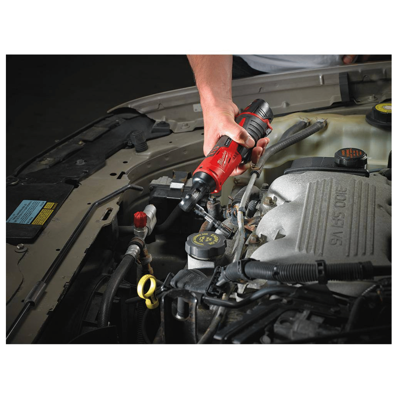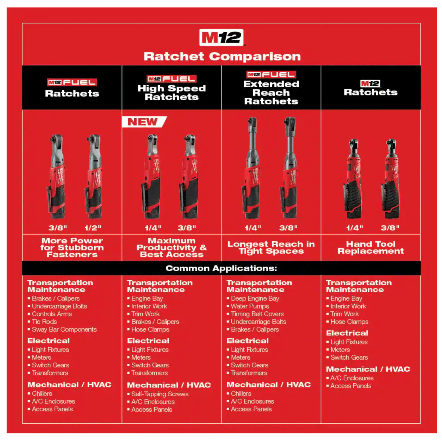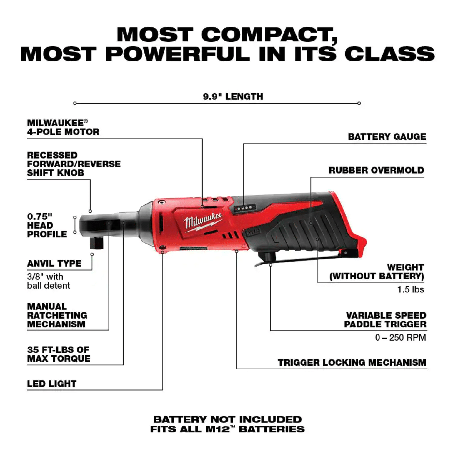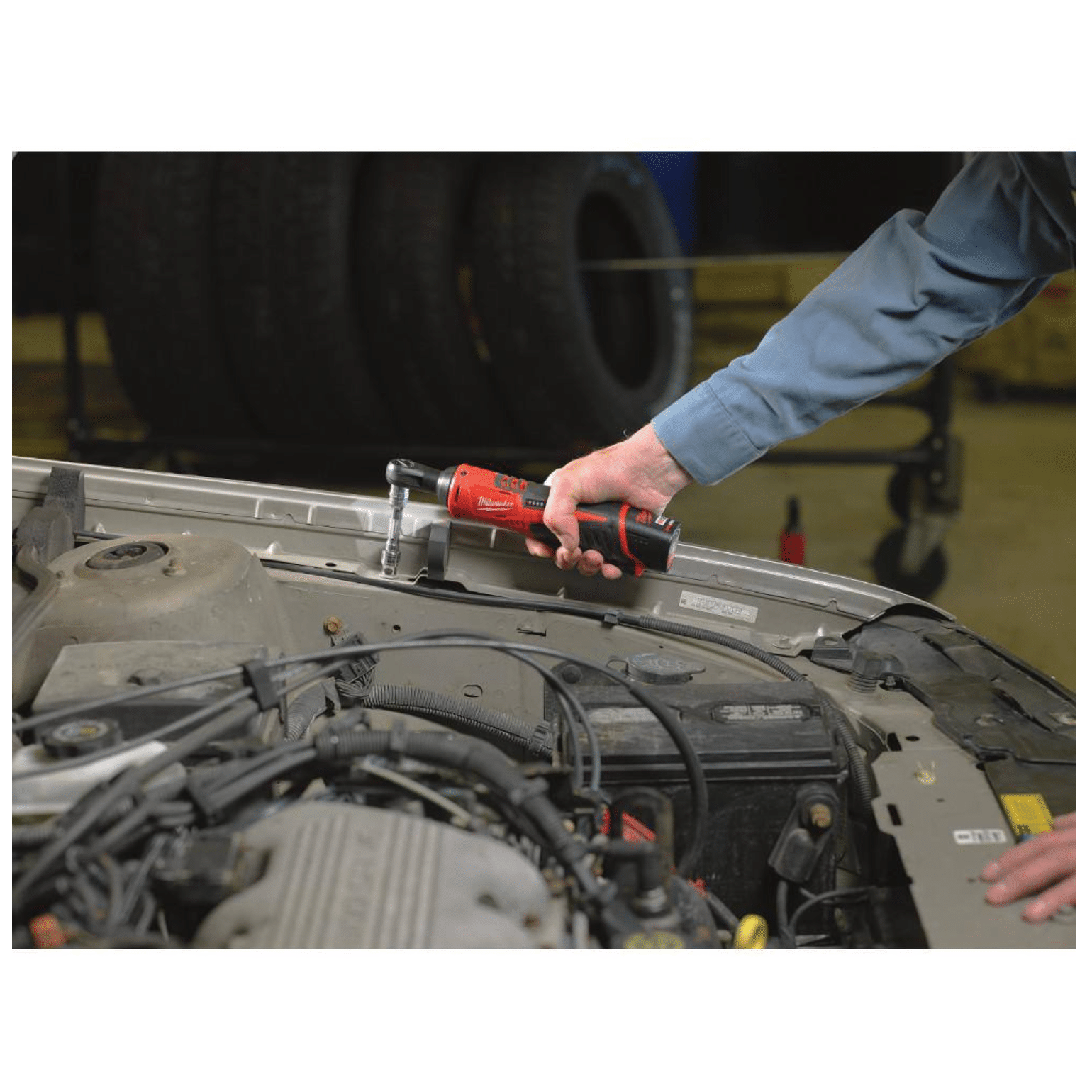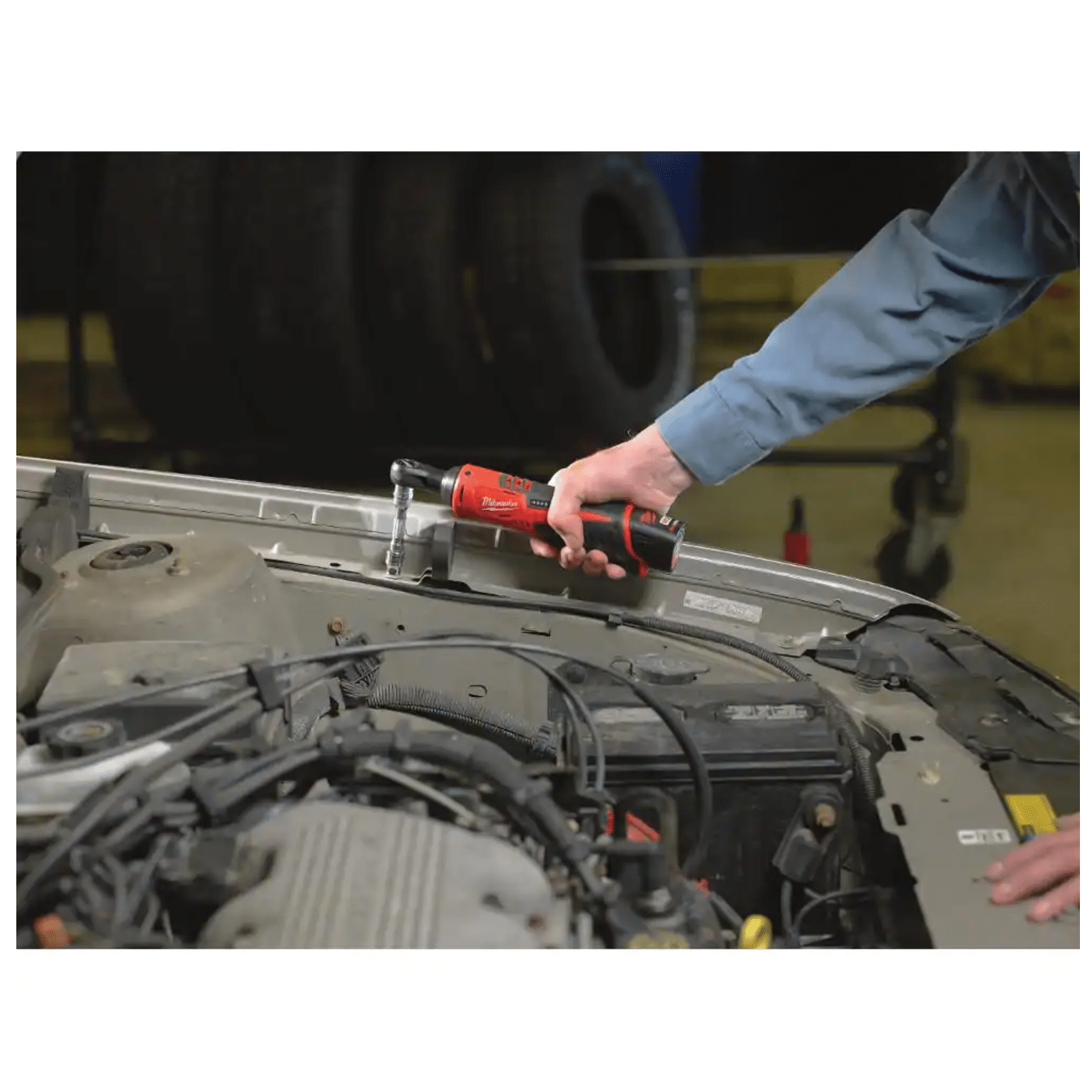 Milwaukee M12 12VLithium-Ion Cordless 3/8 in. Ratchet with M12 Variable Speed Polisher/Sander & 6.0 Ah XC Battery Pack (2457-20-2438-20-48-11-2460)