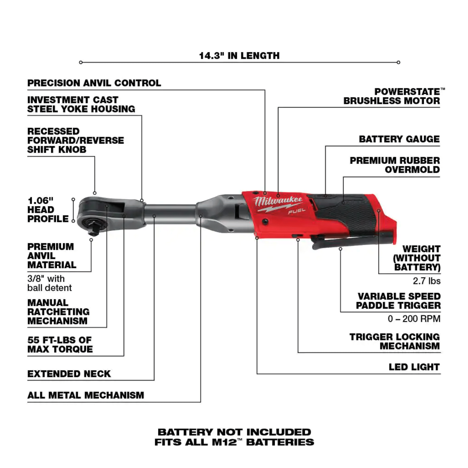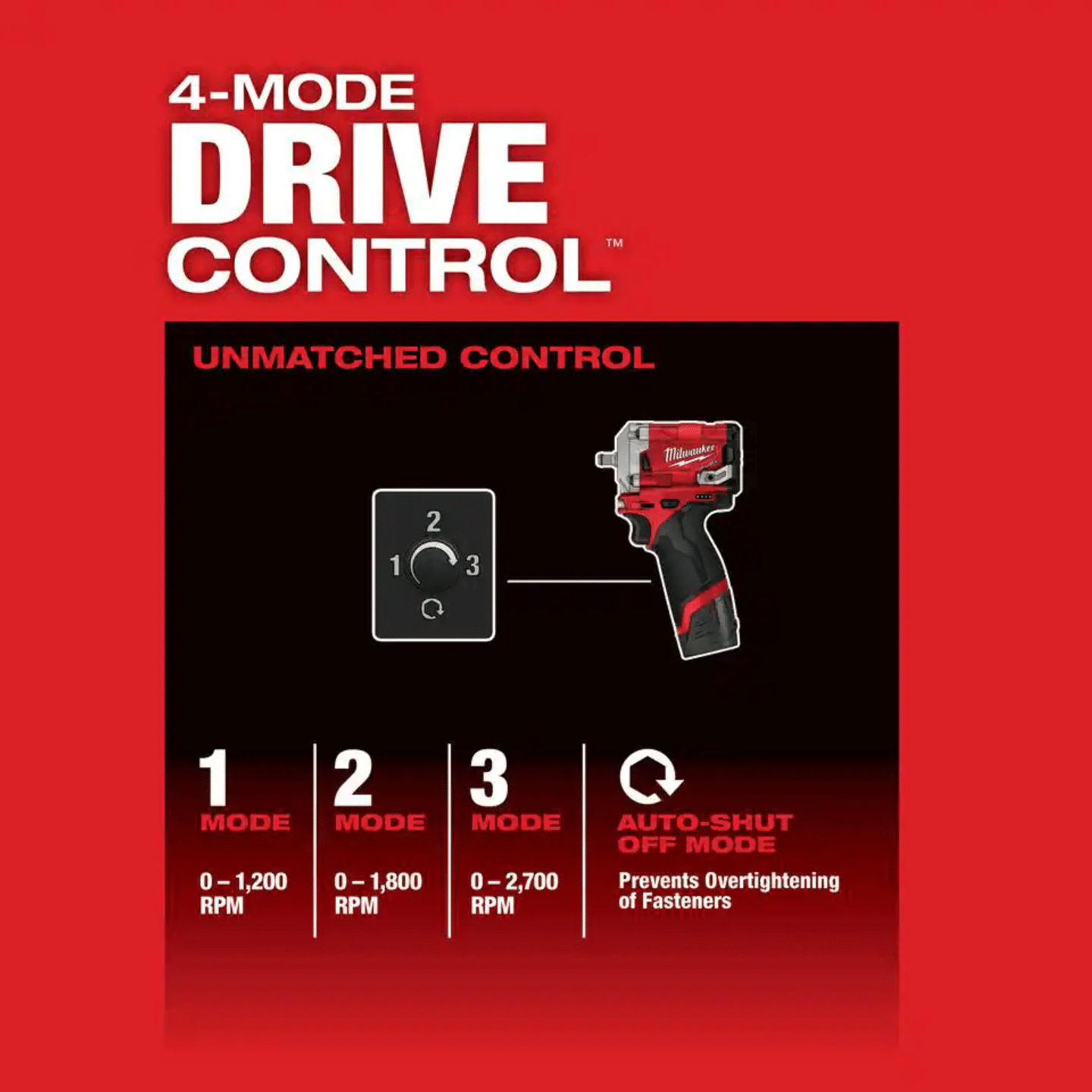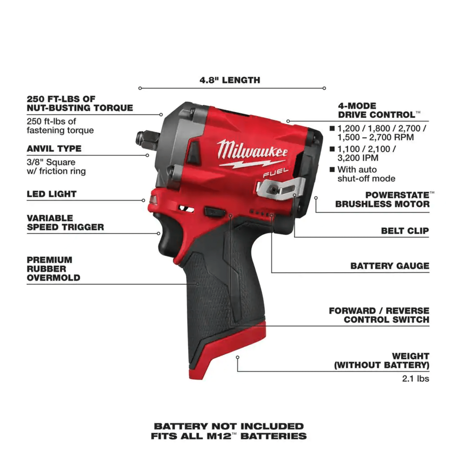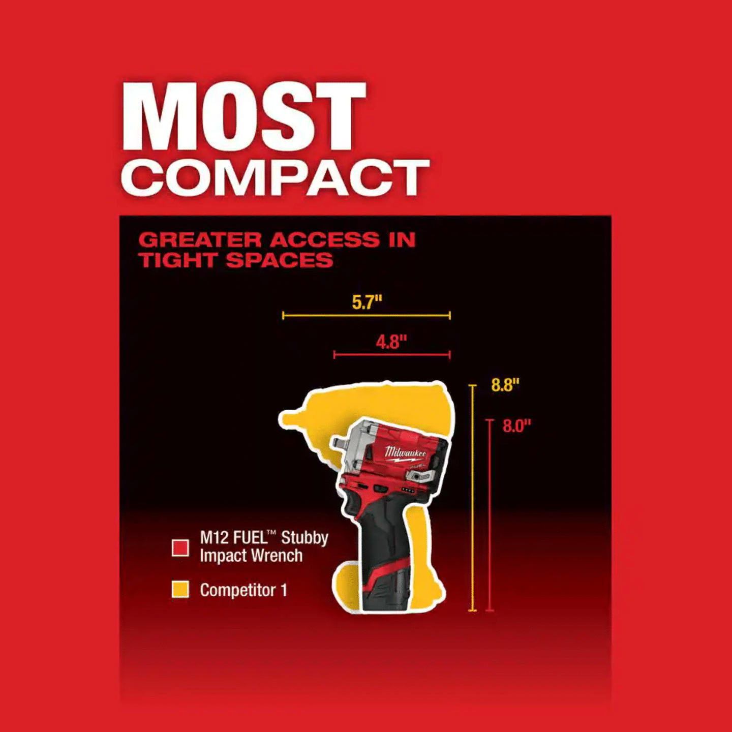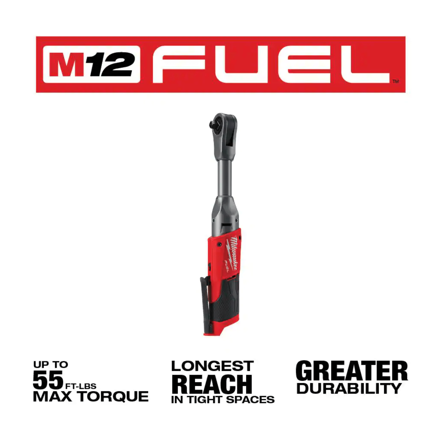 Milwaukee M12 Fuel 12V Lithium-Ion Brushless Cordless Stubby 3/8 in. Impact Wrench with 3/8 in. Extended Reach Ratchet (2554-20-2560-20)