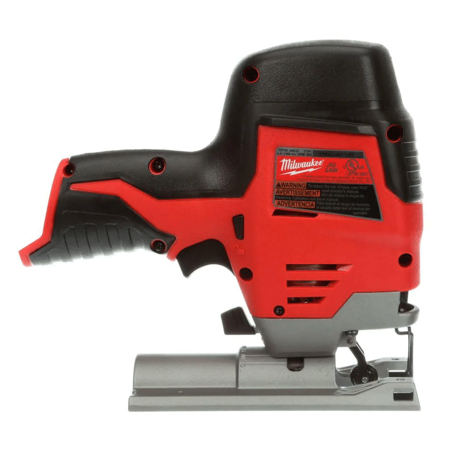 Milwaukee M12 12V Lithium-Ion Cordless Jig Saw with M12 3/8 in. Ratchet & 6.0 Ah XC Battery Pack (2445-20-2457-20-48-11-2460)