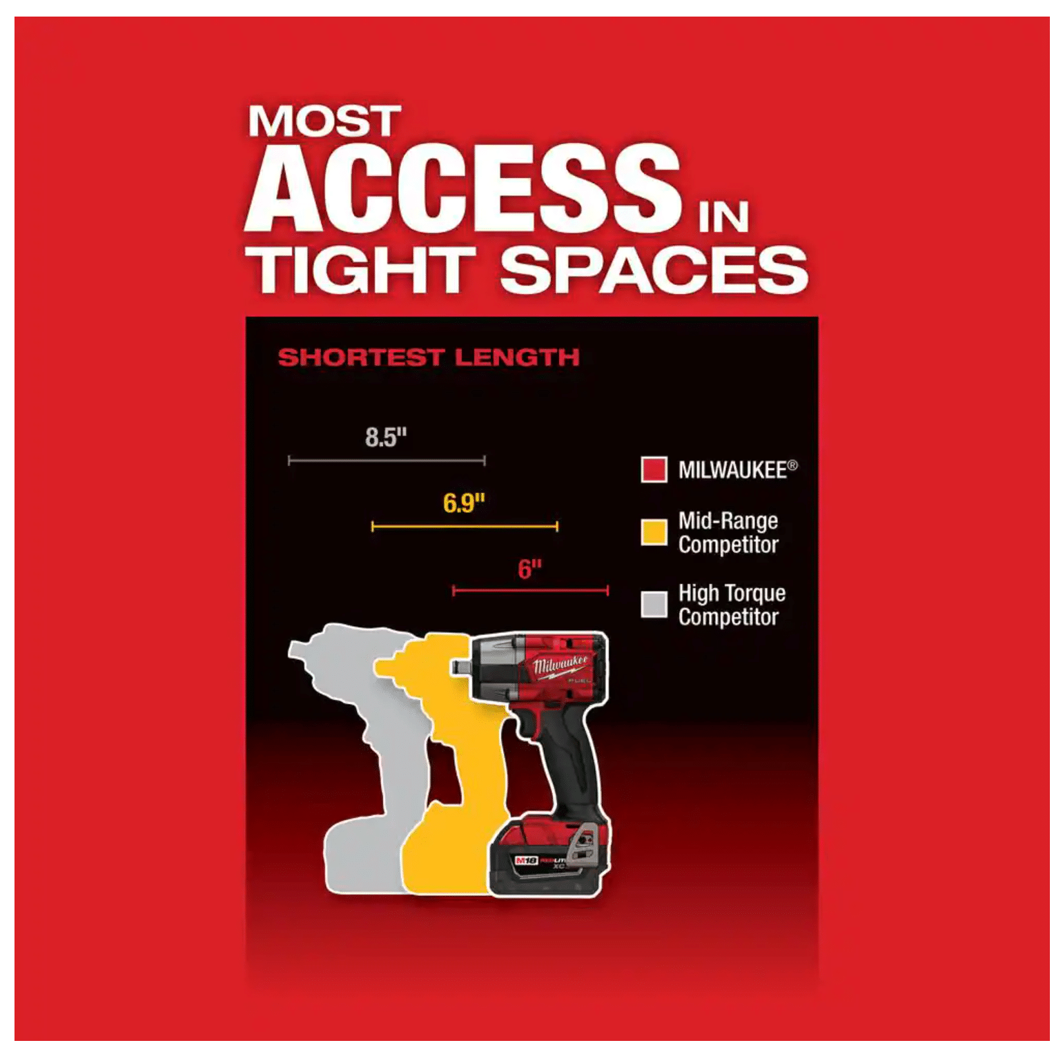 Milwaukee M18 Fuel Gen-2 18-Volt Lithium-Ion Brushless Cordless Mid Torque 1/2 in. Impact Wrench with 5.0 Ah Battery (2962-20-48-11-1850)