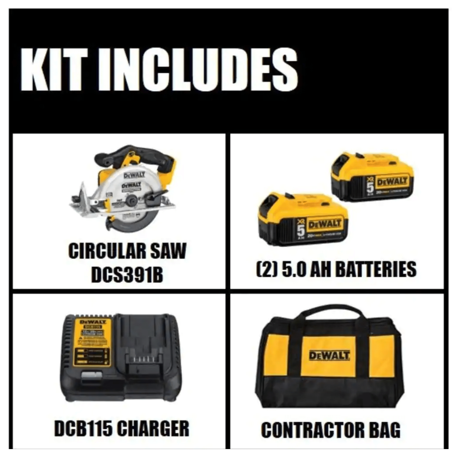 Dewalt 20-Volt Max Cordless 6-1/2 in. Circular Saw with (2) 20-Volt Batteries 5.0Ah & Charger (DCB2052CKW391B)