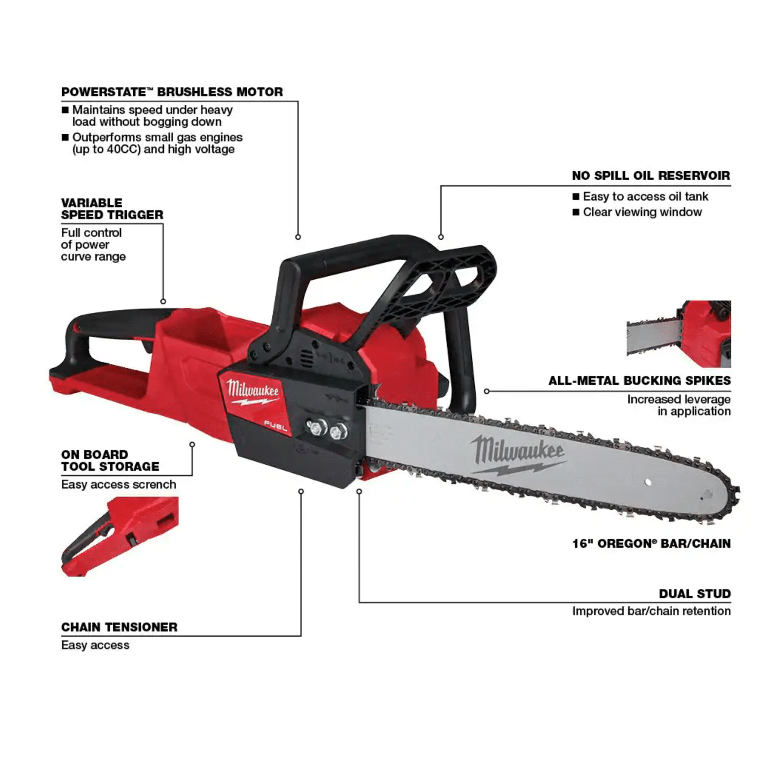 Milwaukee M18 Fuel 16 in. 18-Volt Lithium-Ion Brushless Cordless Chainsaw. Tool-Only (2727-20)