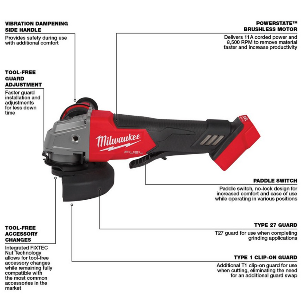 Milwaukee M18 Fuel 4-1/2″ / 5″ Grinder Paddle Switch. No-Lock (MIL 288020)