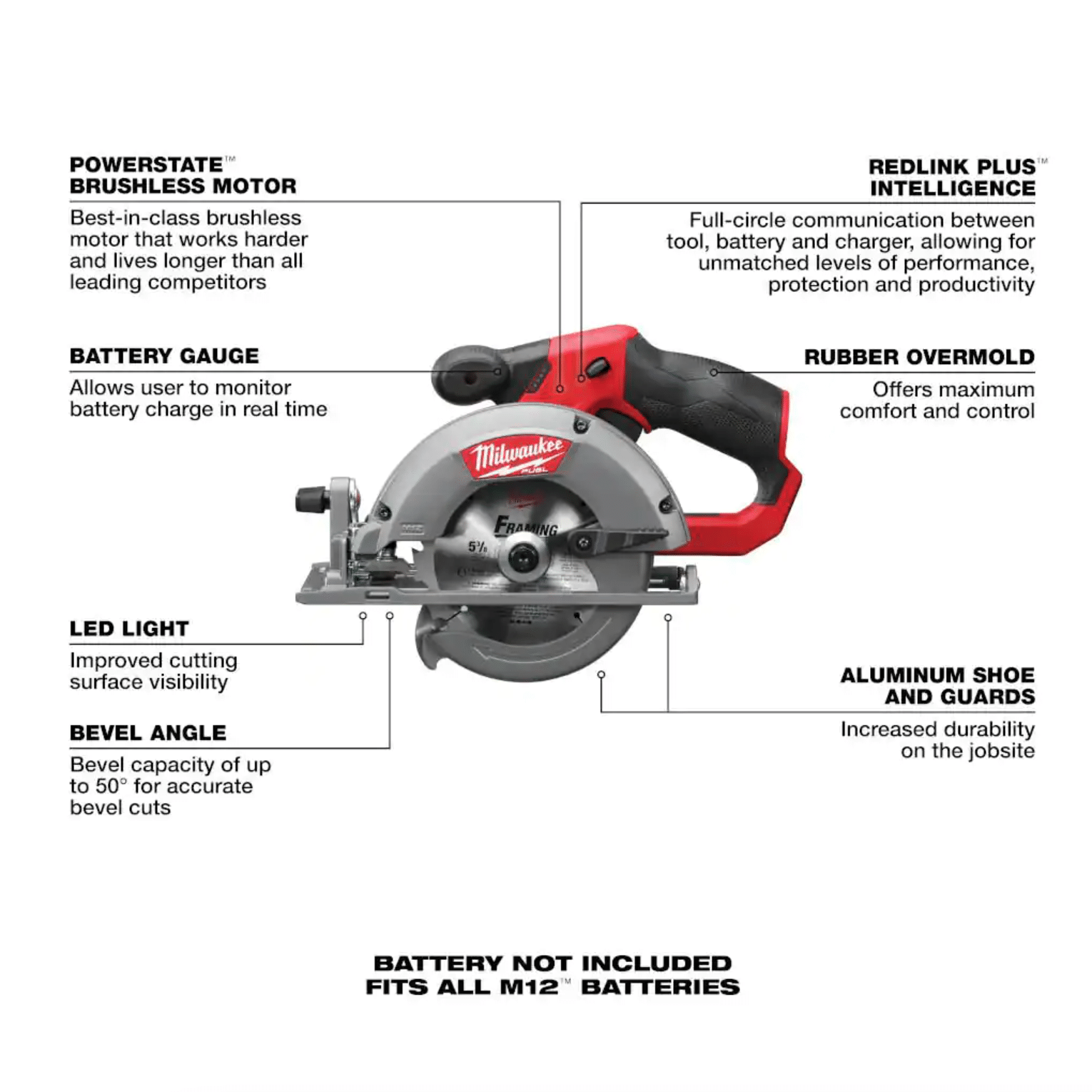 Milwaukee M12 Fuel 12-Volt Lithium-Ion Brushless Cordless 5-3/8 in. Circular Saw (Tool-Only) w/ 16T Carbide-Tipped Metal Saw Blade (2530-20)