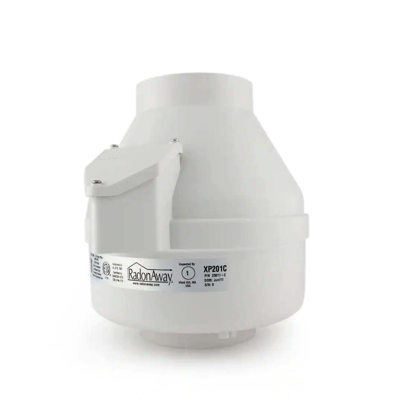 RadonAway XP201C 4 in. Inlet And Outlet Inline Radon Fan In White With 1.6 In. Maximum Operating Pressure