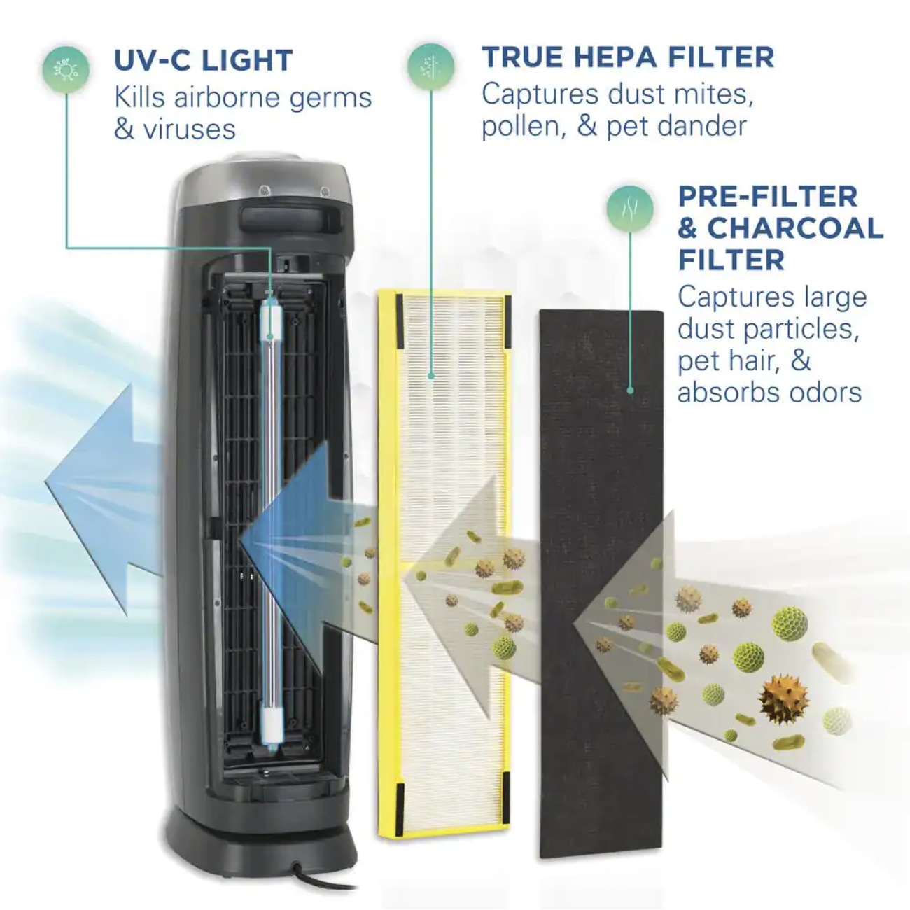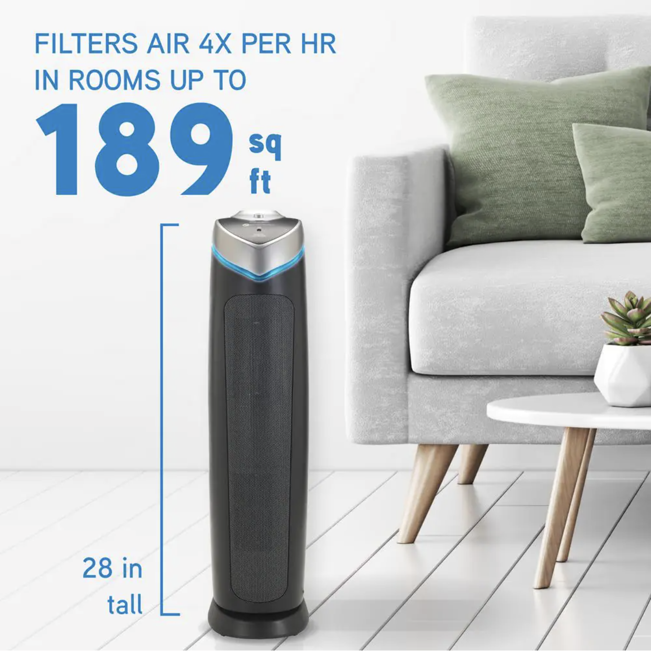GermGuardian 28 in. 4-in-1 Air Purifier with True HEPA filter for Medium Rooms up to 179 Sq Ft. Black