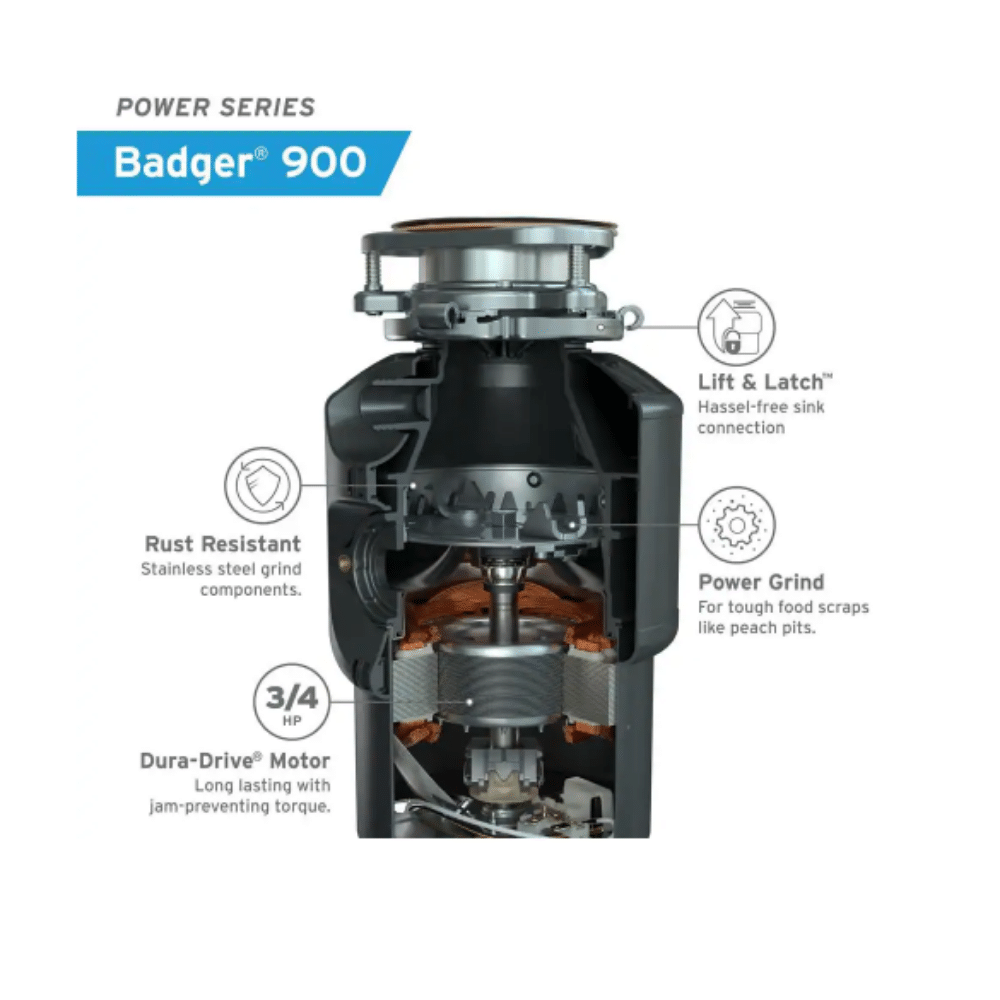 InSinkErator Badger 900 Lift & Latch Power Series 3/4 HP Continuous Feed Garbage Disposal (BADGER 900)