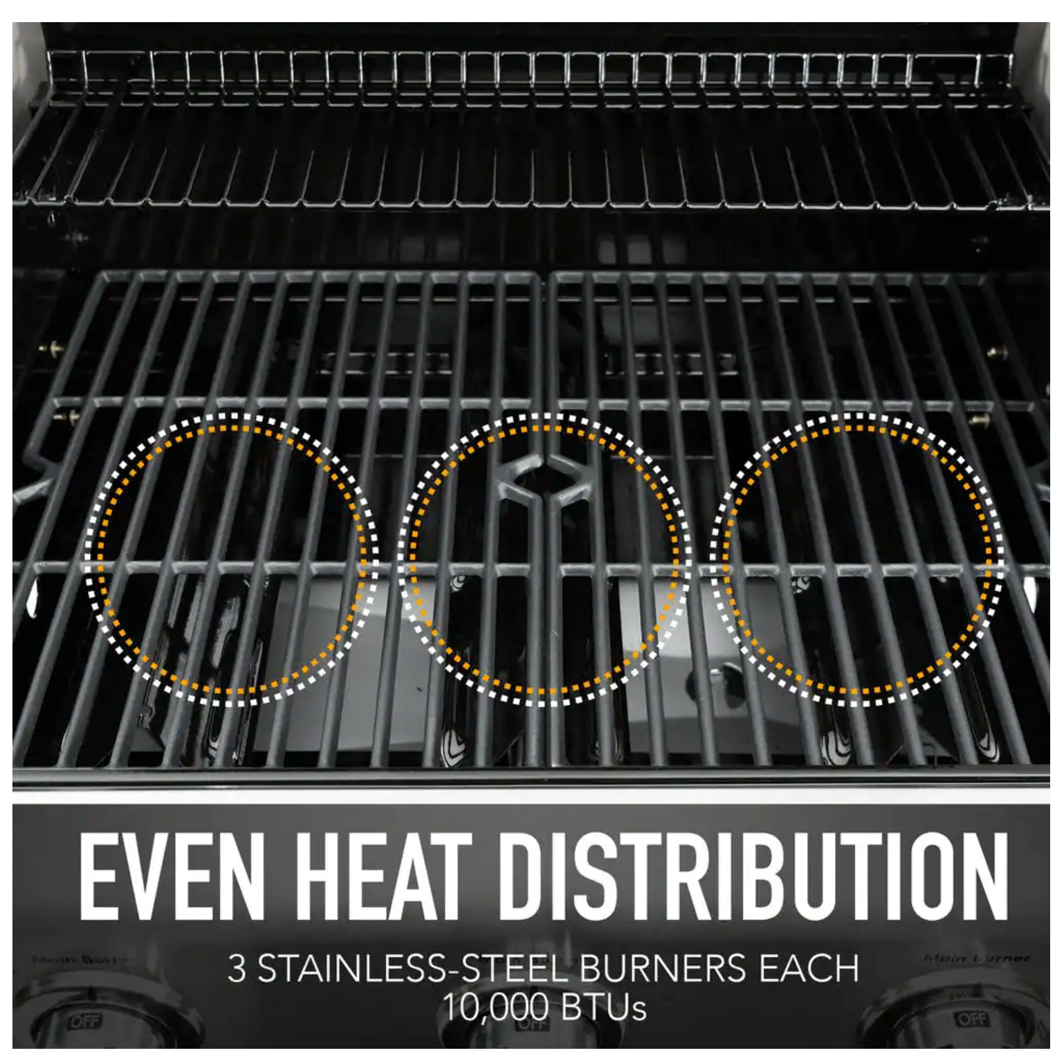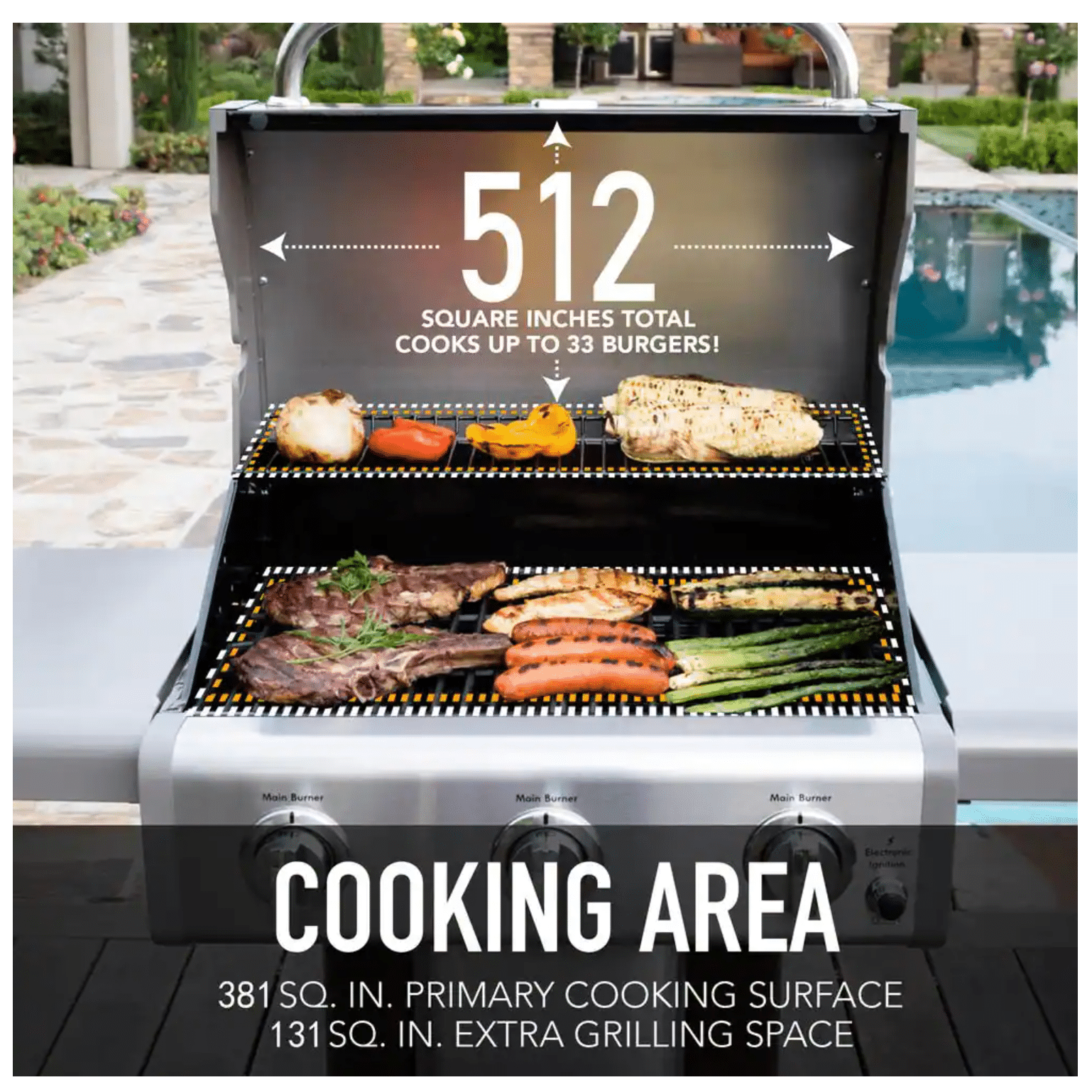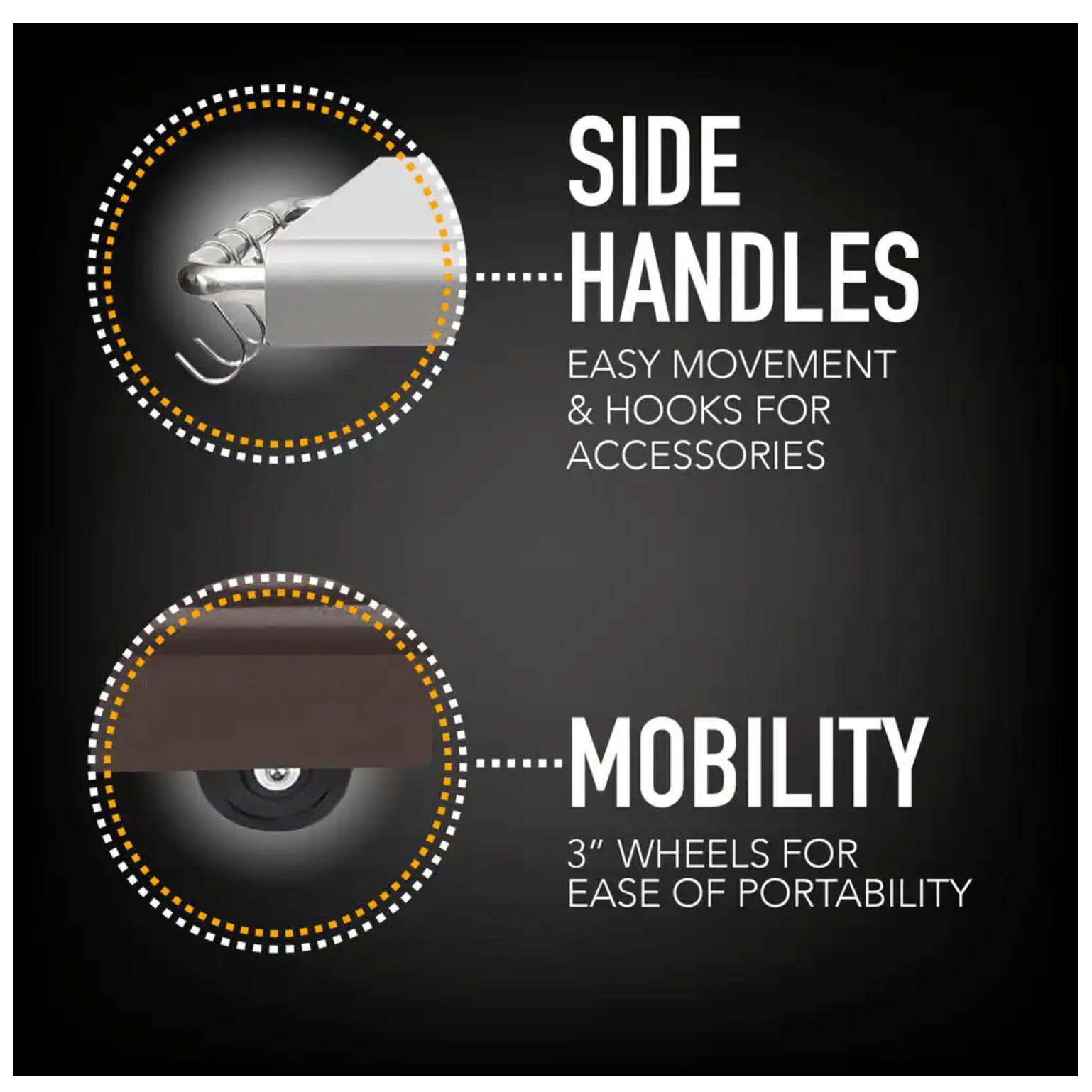 Kenmore 3-Burner Propane Gas Pedestal Grill with Folding Side Shelves in Mocha with 4-Wheels
